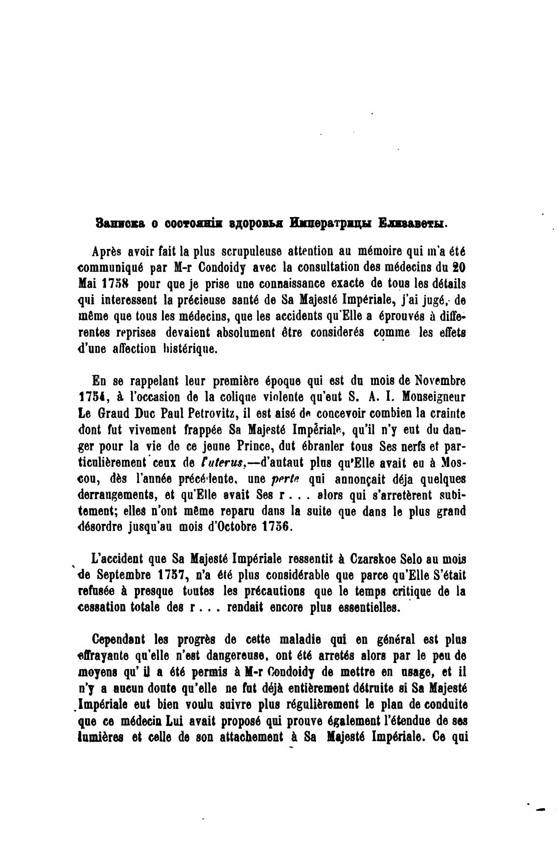 qui interessent la pr6cieuse sant6 d6 Sa Majest6 Imp6riale, j'ai јидб, d6