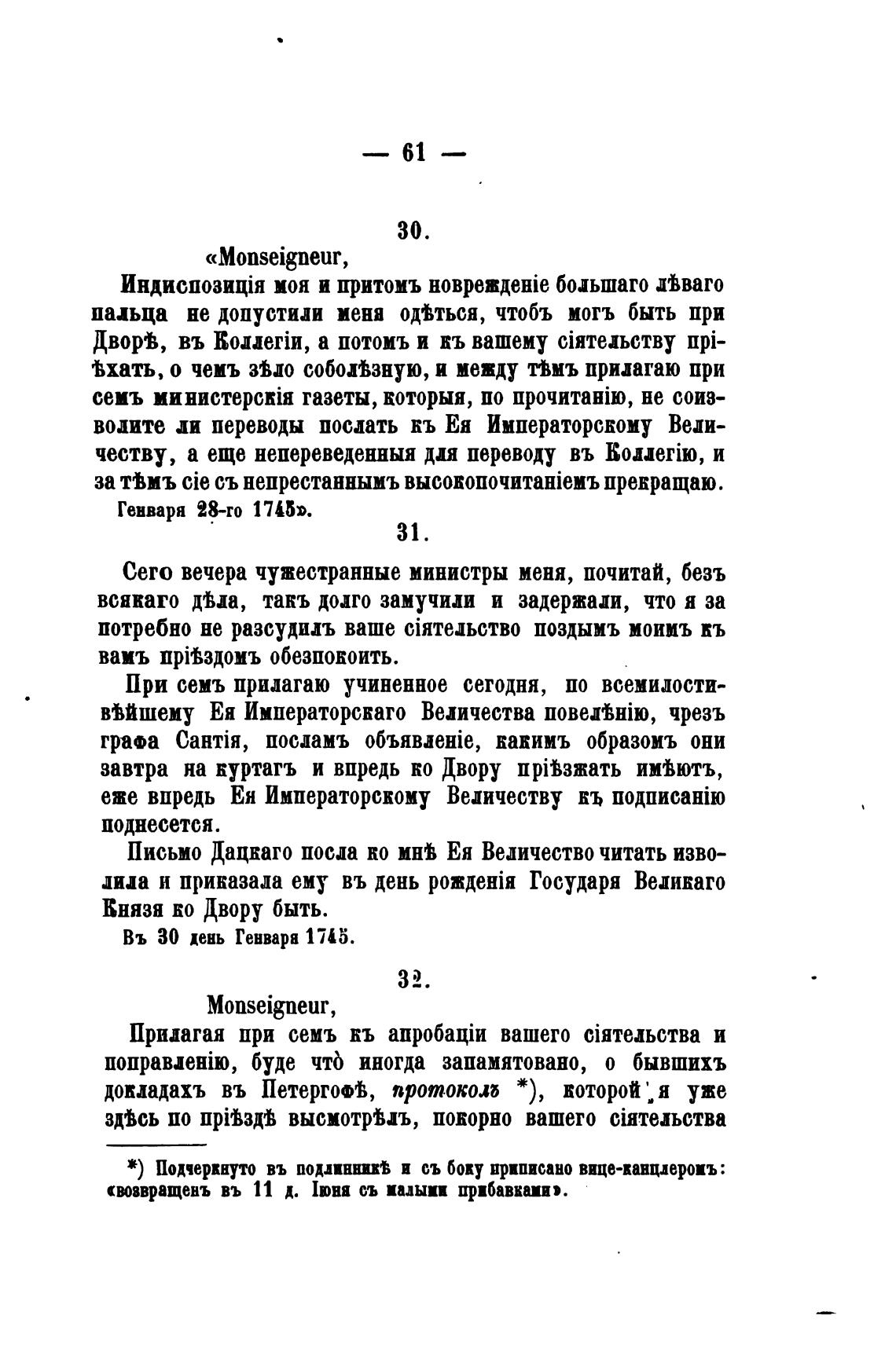 Сего вечера чужестранные министры меня, почитай, безъ
