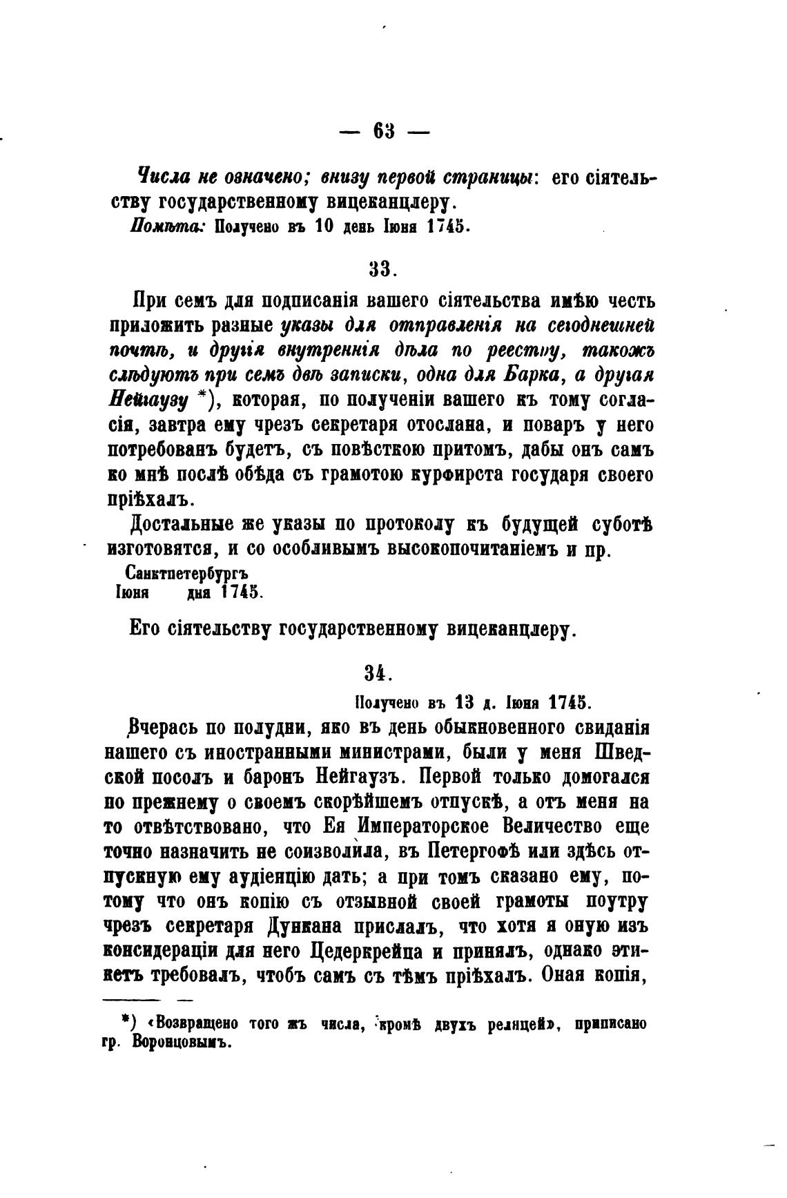 то отвжствовано, что Ея Императорское Ведичество еще