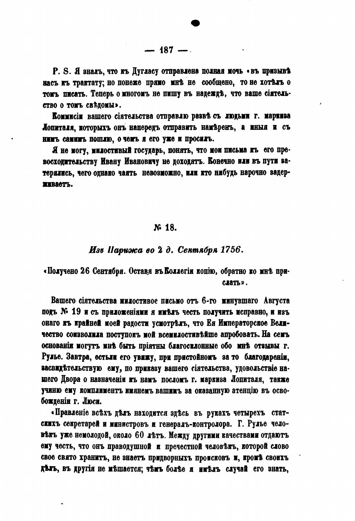 «Получено 26 Сентября. Оставя въВоиейи ROIIiD, обратно во при-