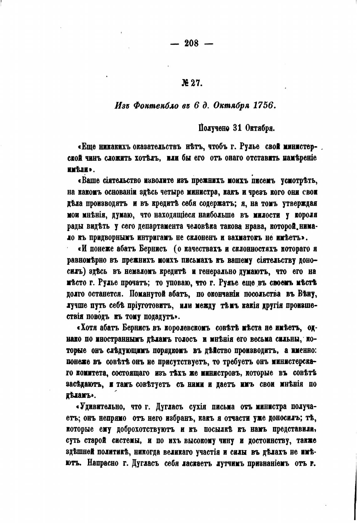 Изб Фонтенбло Вб 6 д. Октября 1756.