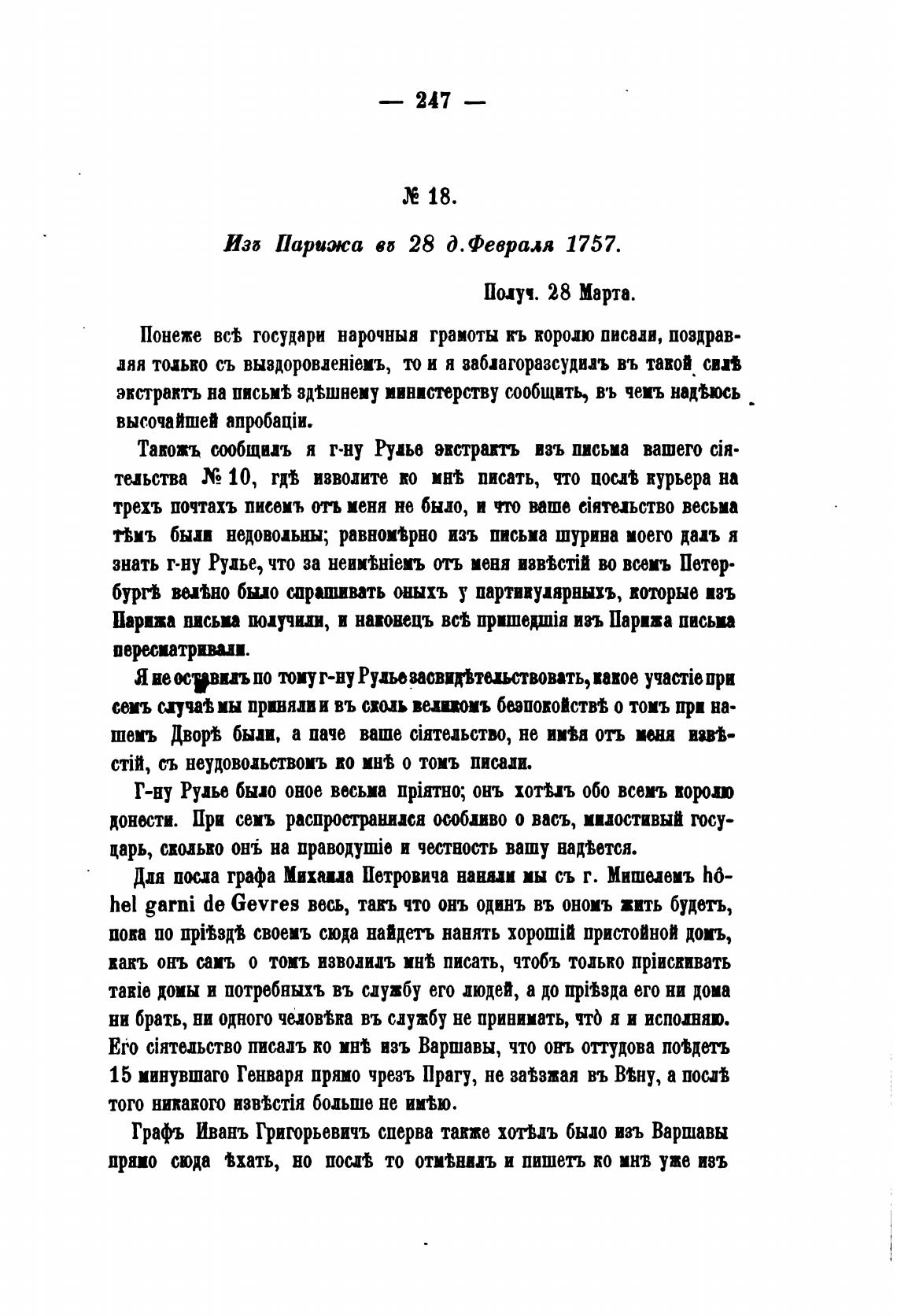 Парижа письп подучив, и ниовецъ вс•в пришерпја изъ Парижа письма