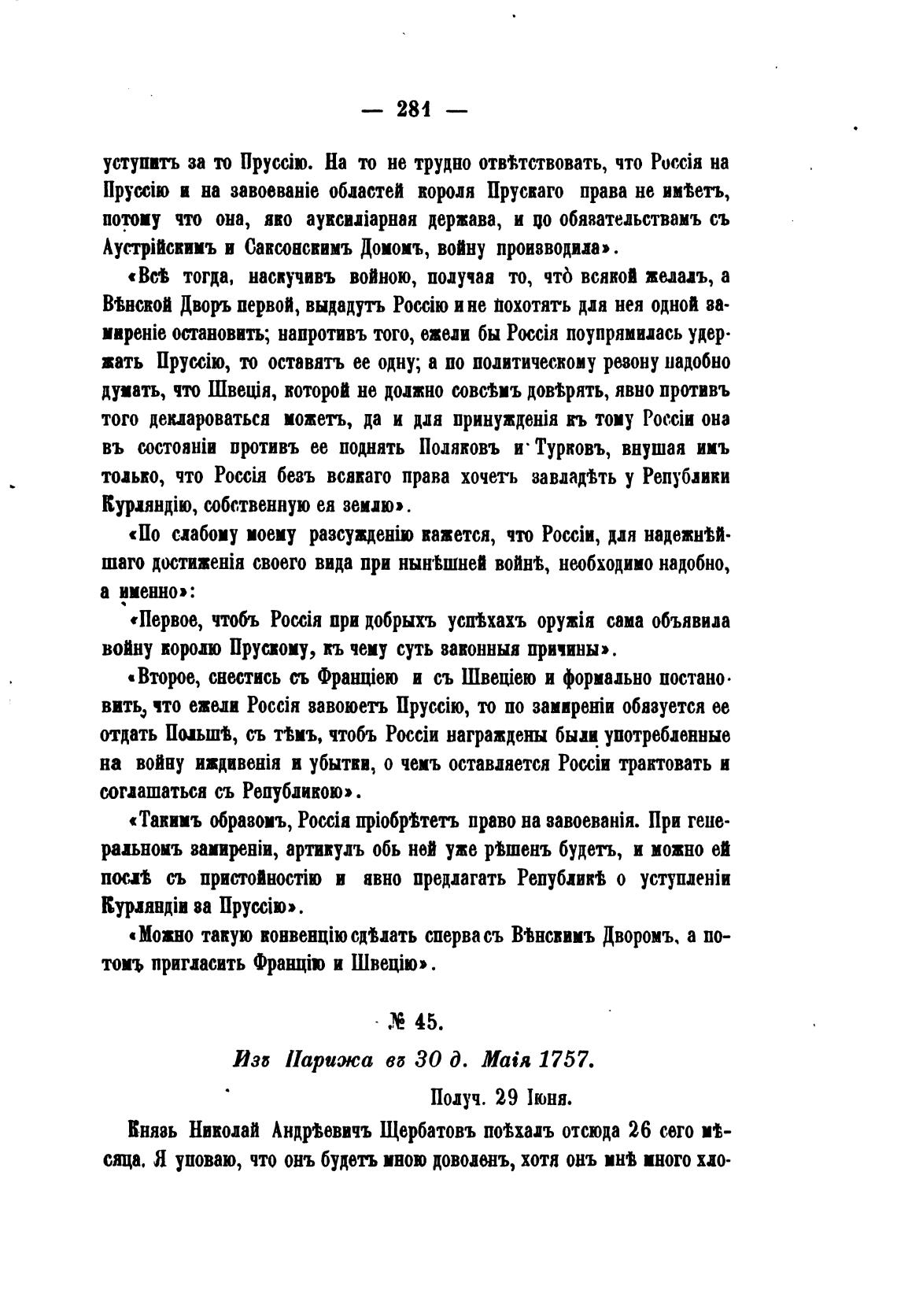Князь Николай АндрМввчъ Щербатовъ поваль отсюда 26 сего М-