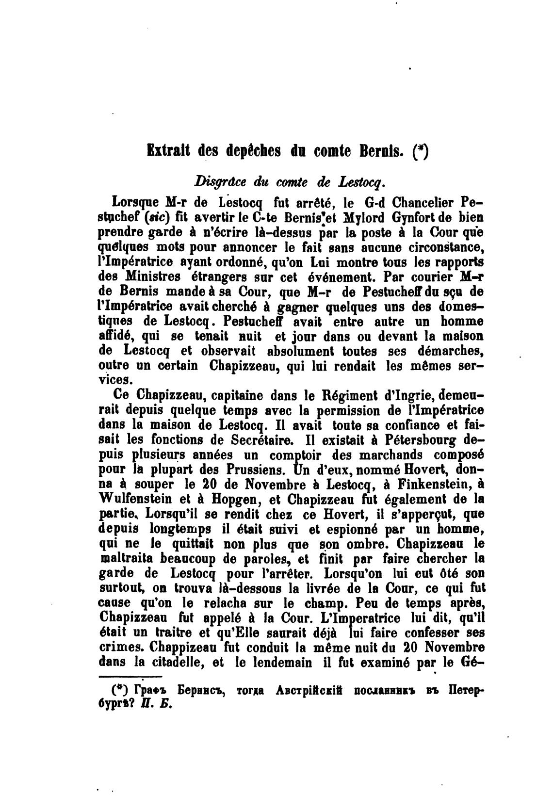 Lorsque de Lestocq fut arr6t6, le Chancelier Ре—