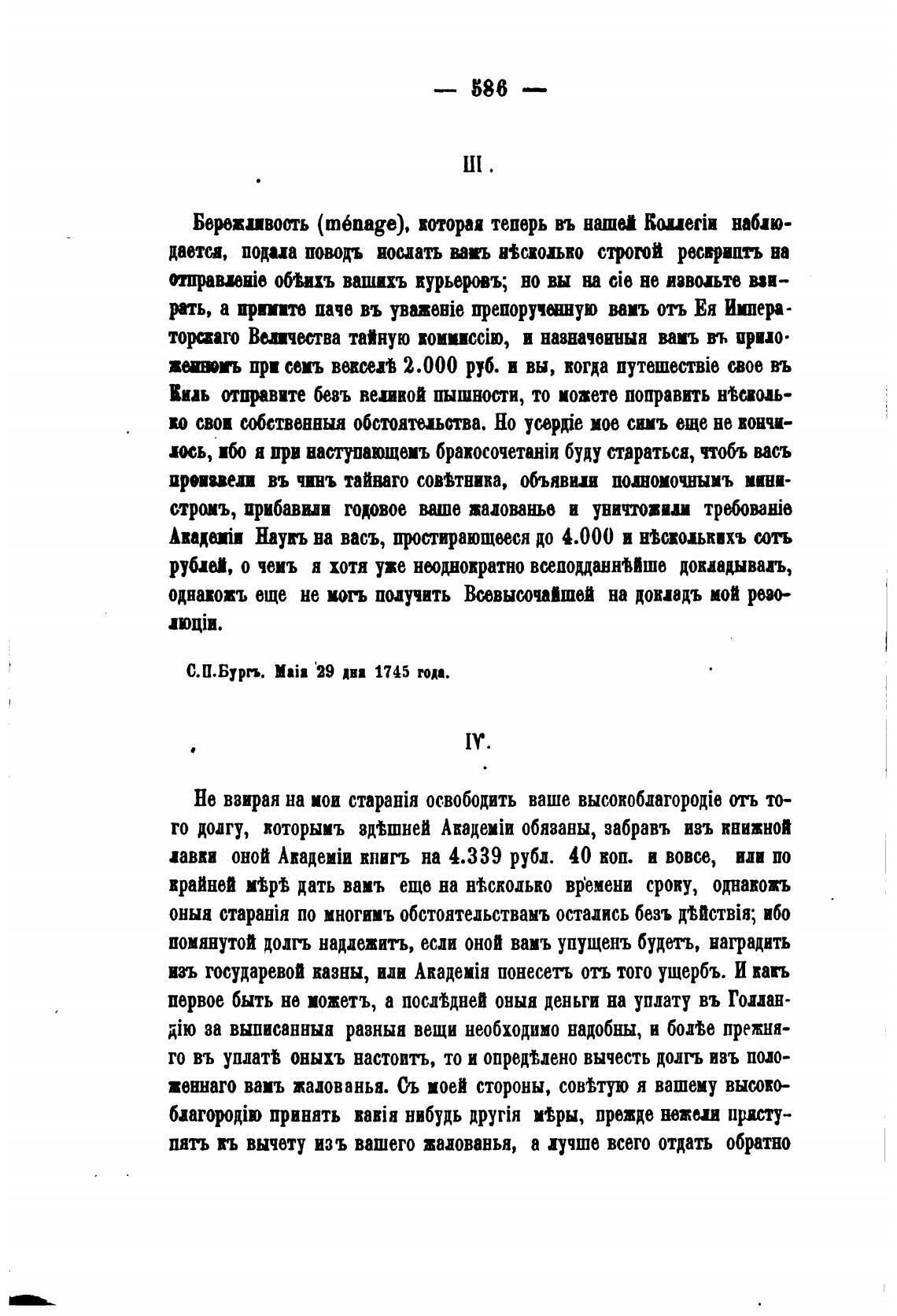 С.П.Бургъ. NaiB 29 дна 1745 года.