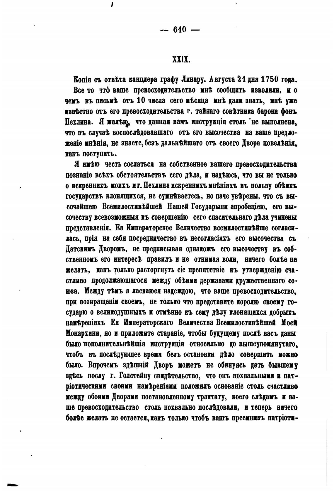съ отвиа ванщера графу Линару. Августа И дня 1750 года.