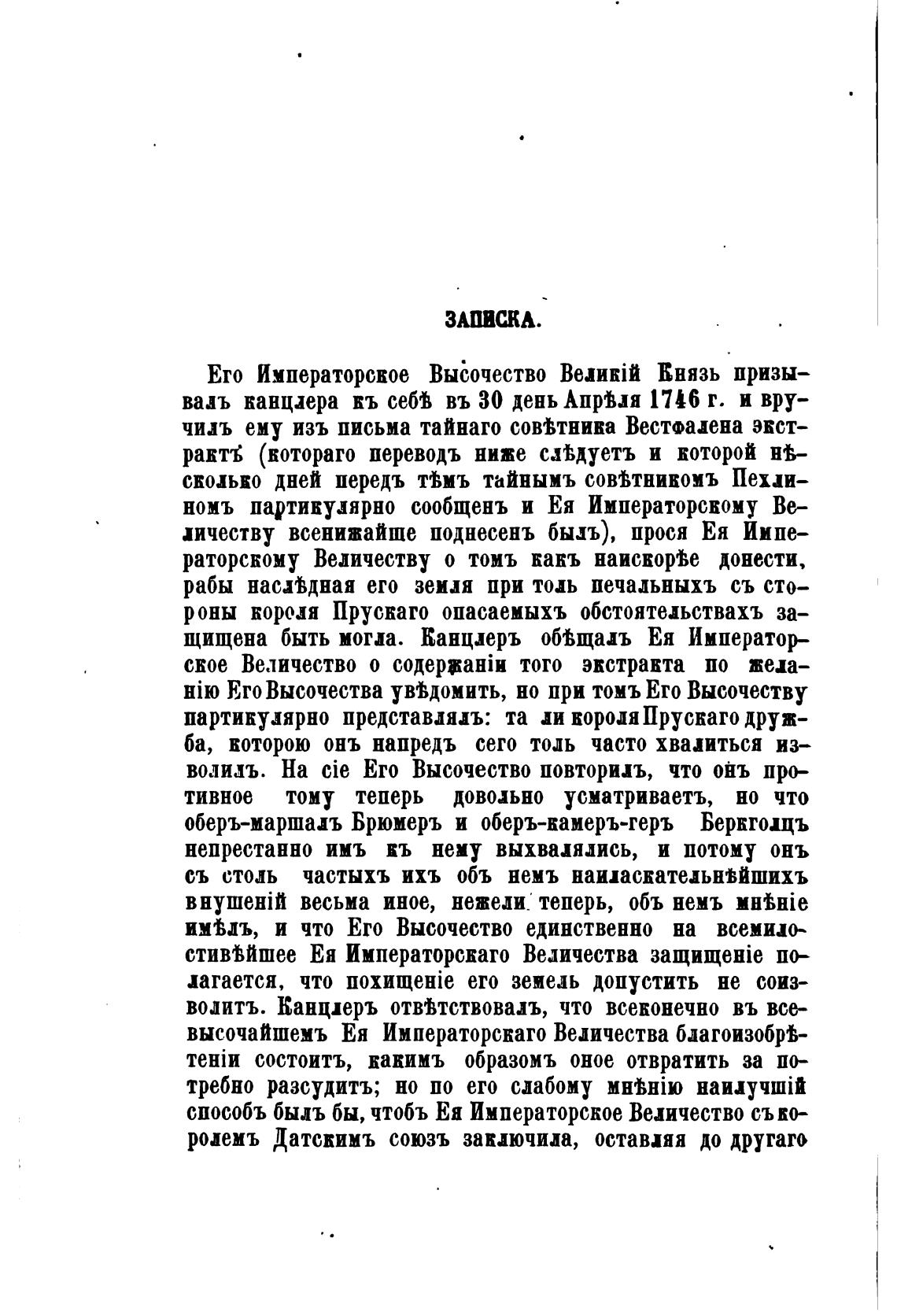 номъ партикудярно сообщень и Ея Императорскому Ве-