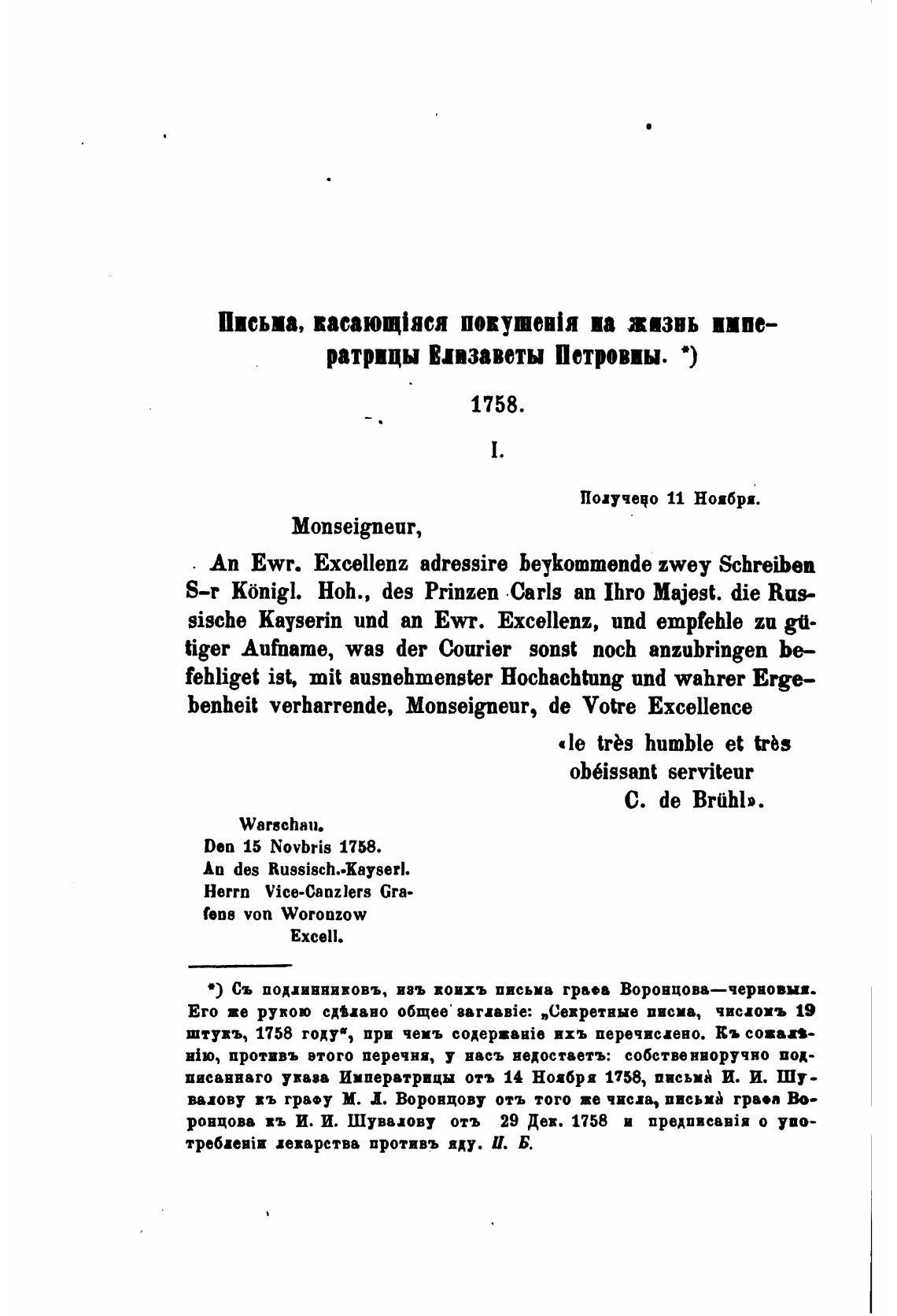 •) Съ подливвивовъ, взъ воихъ письма гра•а Воровцова—червовня.