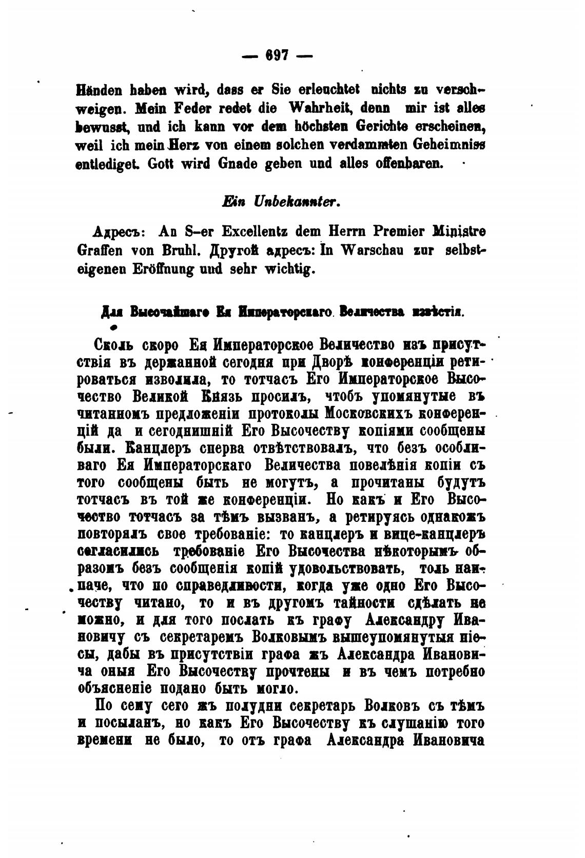 Grafen von Bruhl. Другой адресъ: In Warschau zor selbst-