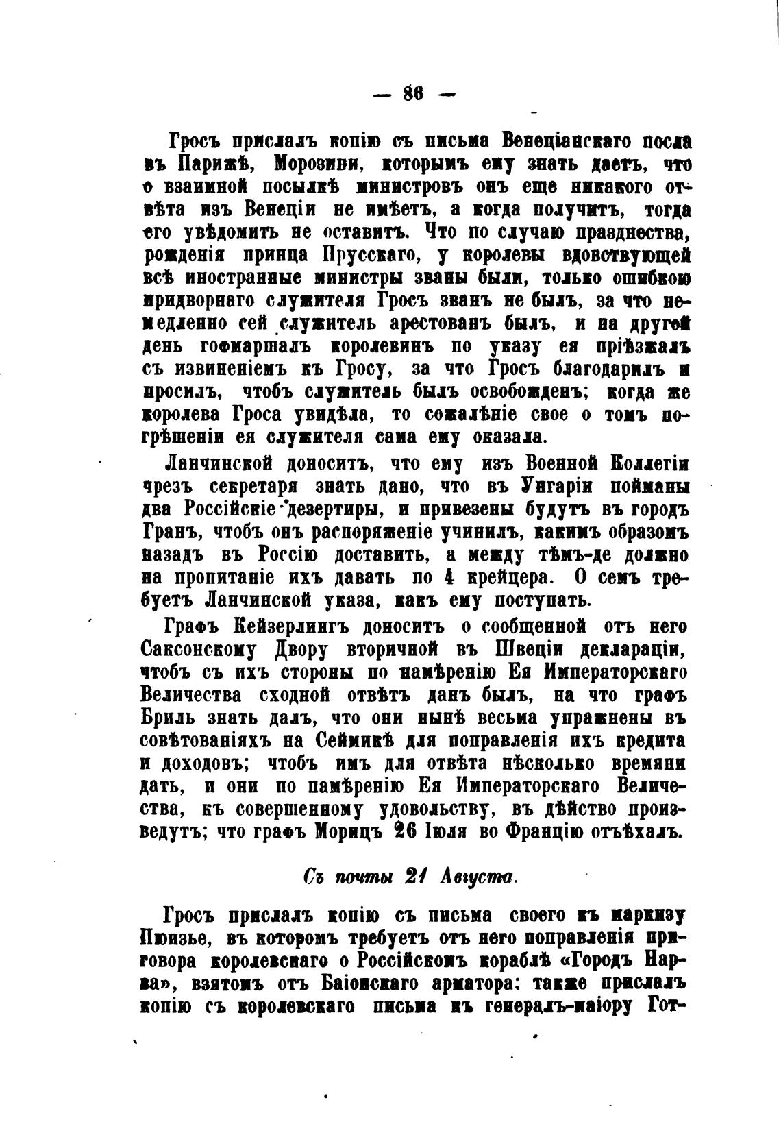 ведутъ; что гра•ъ Морицъ 26 1юля во отмхалъ.