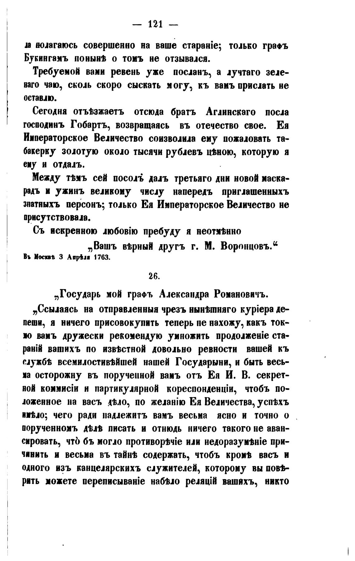 „Вашъ в%рный другъ г. М. Воронцовъ.с