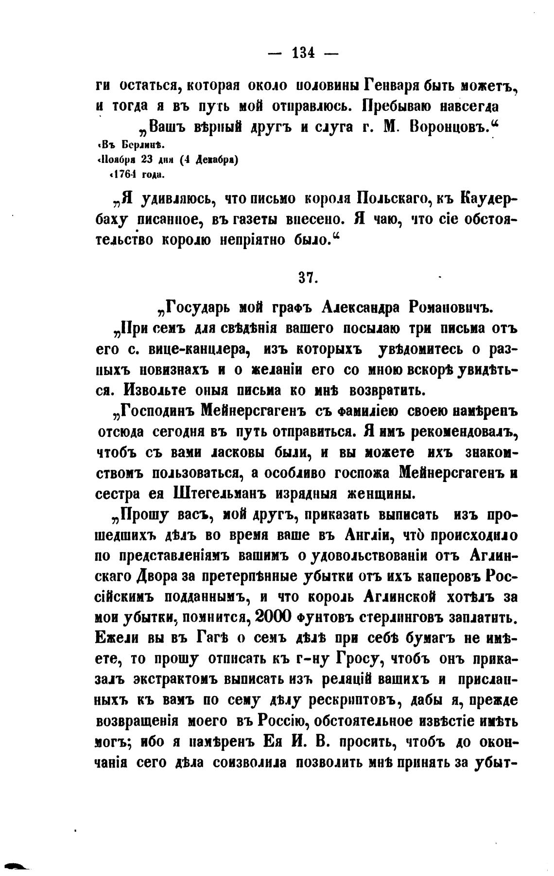 „Вашъ вјриый другъ и слуга г. М. Воронцовъ.с