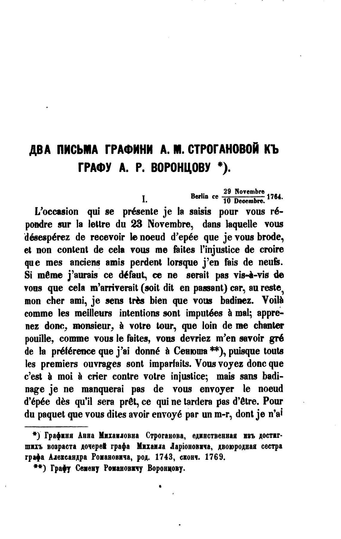 ДВА письм ГРАФИНИ А. М. СТРОГАНОВОЙ КЬ