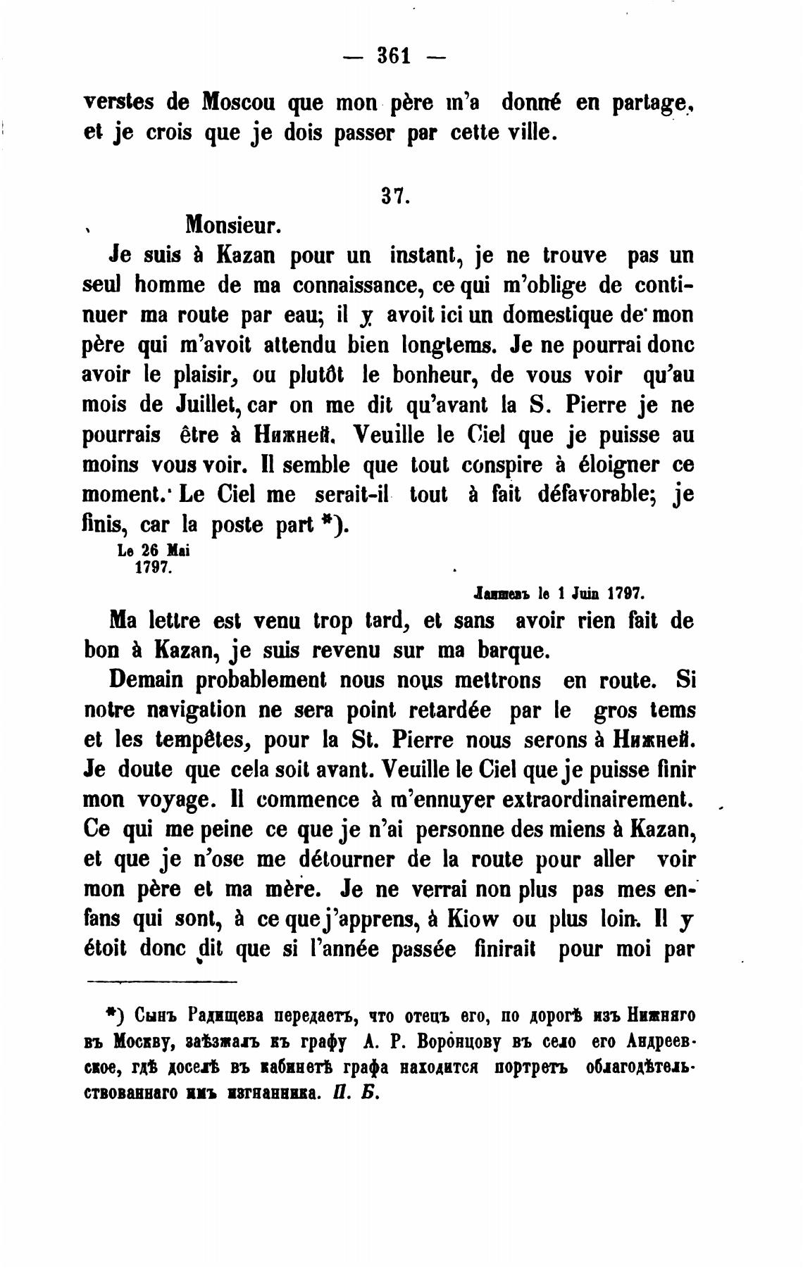 Сынъ Радищева передаеть, что отецъ его, по дорог•В изъ Нижняго