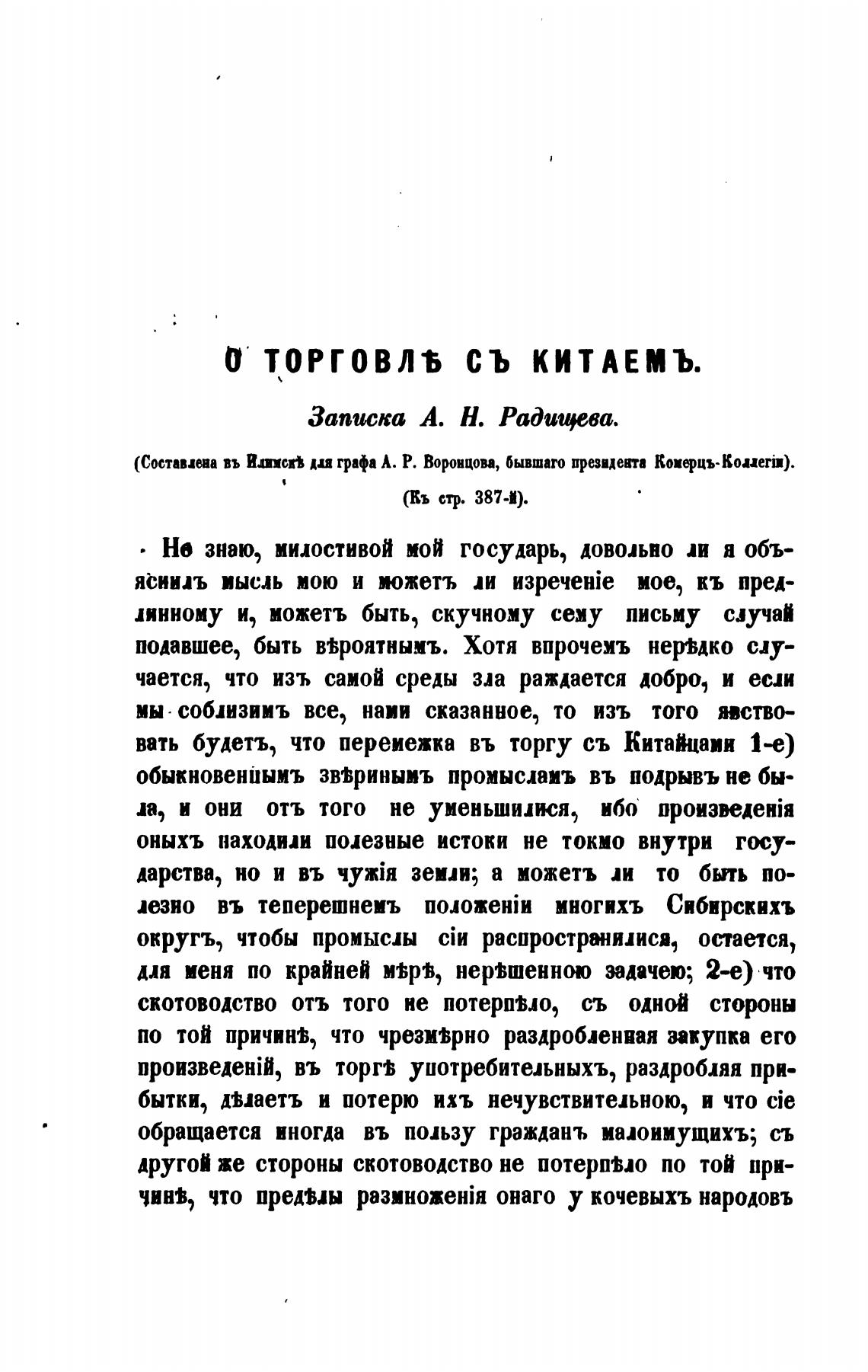 Записка А. Н. Радищева.