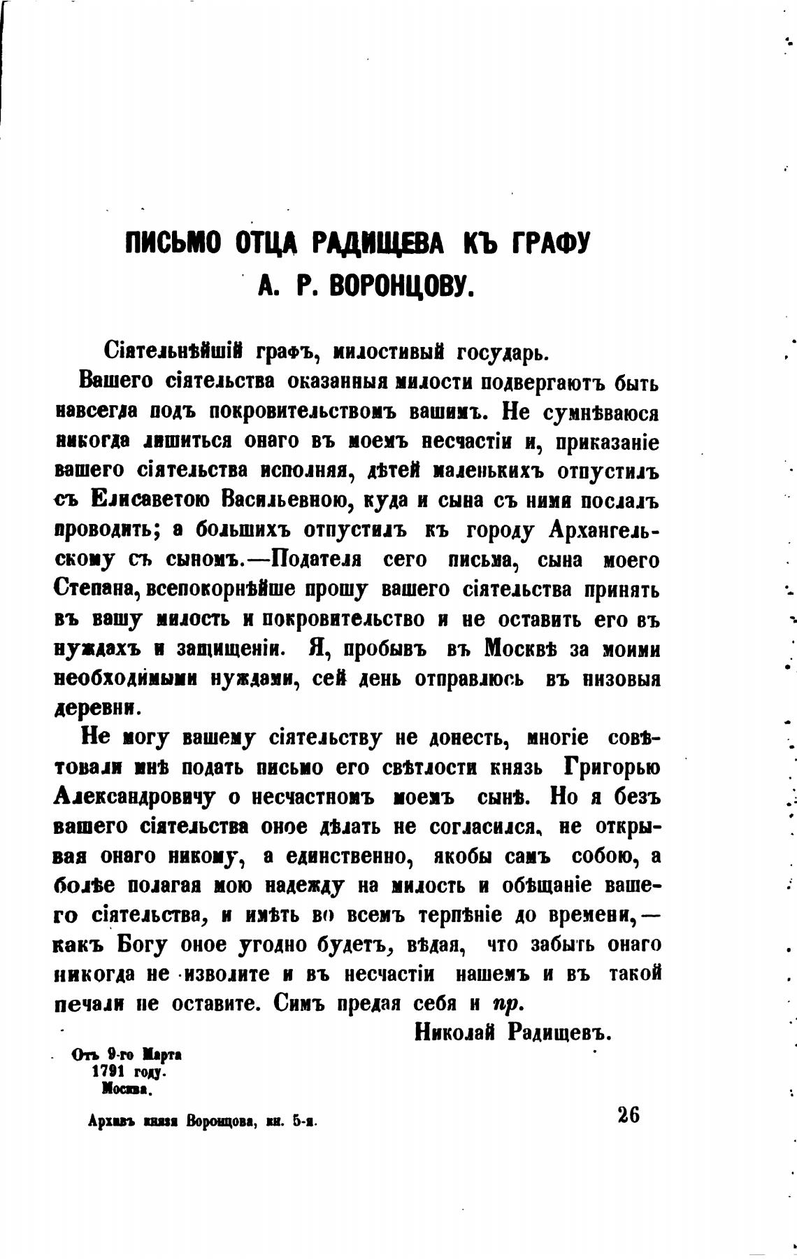 письмо отца РАДИЩВА КЬ ГРАФУ
