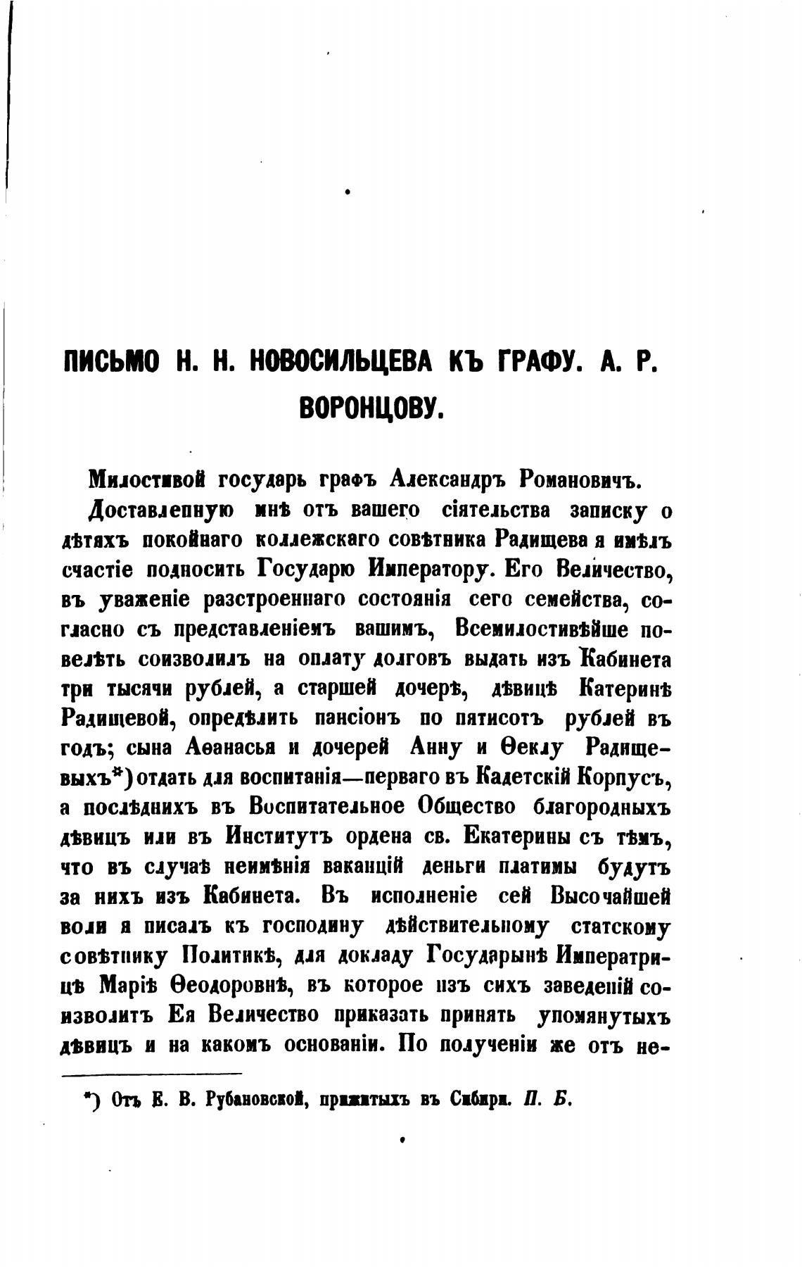письмо Н. Н. НОВОСИЛЬЦЕВА КЬ ГРАФУ. А. Р.