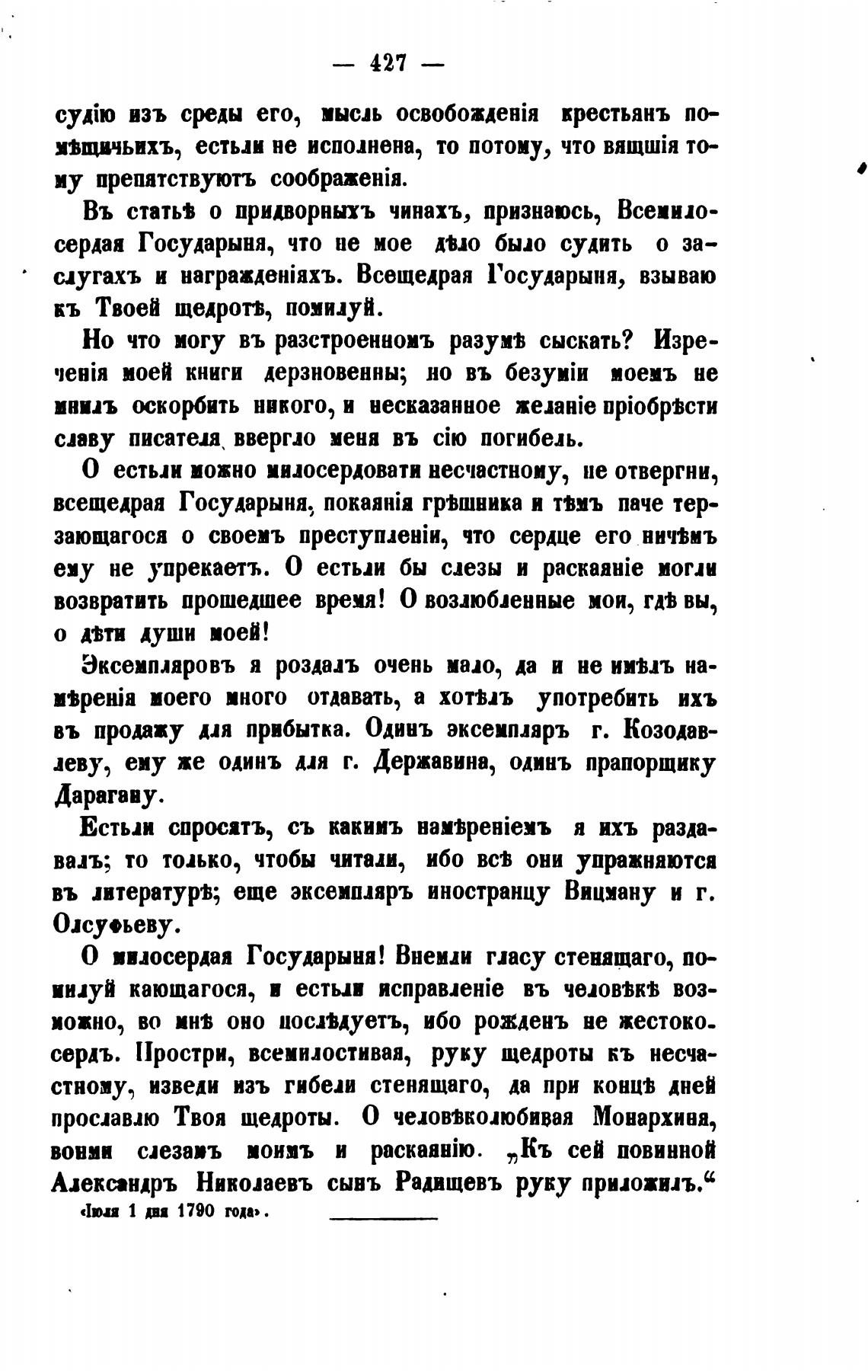Алемпндръ Николаевъ сывъ Радищевъ руку приложил.“