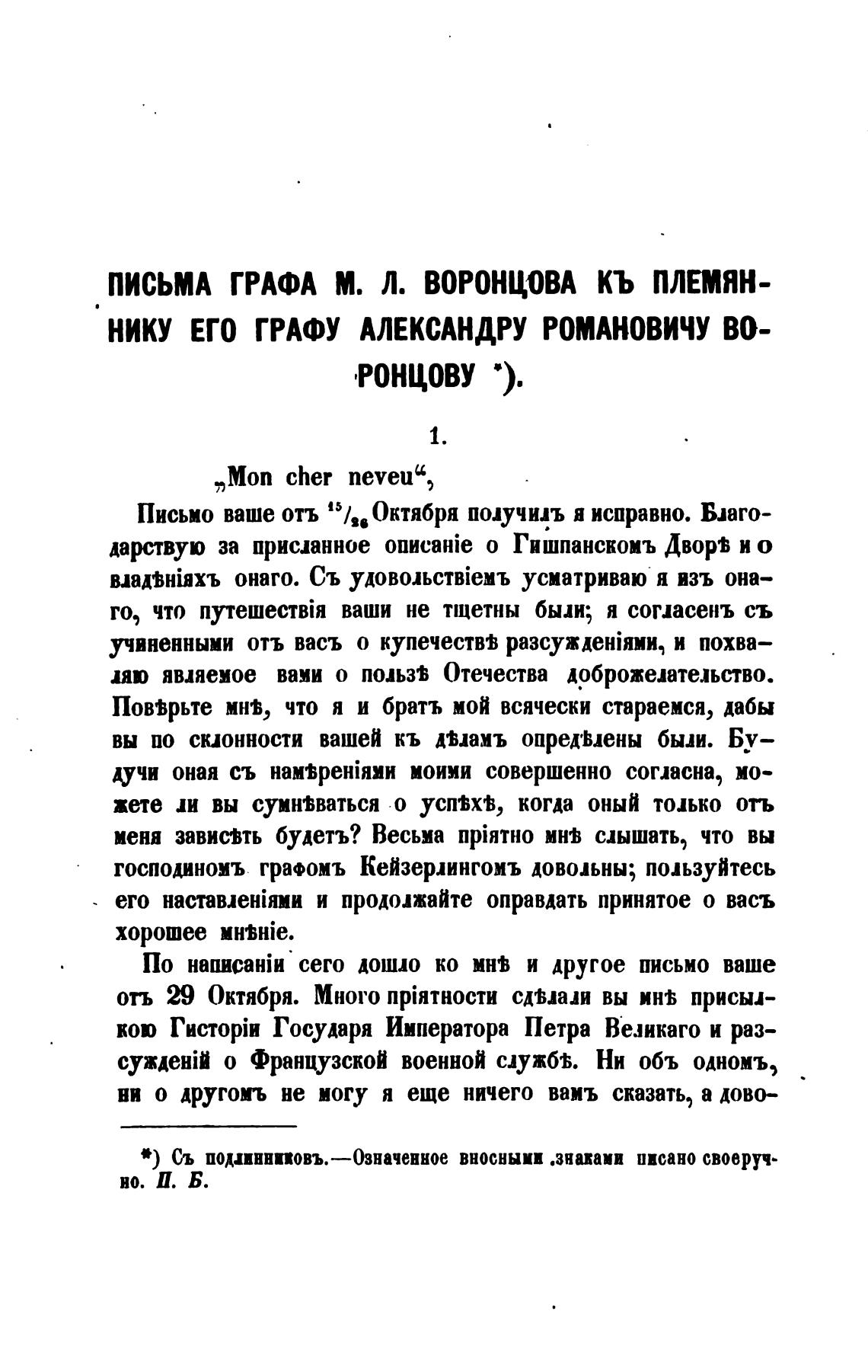 пиСЬм ГРАФА М. Л. ВОРОНЦОВА КЬ плЖяН-
