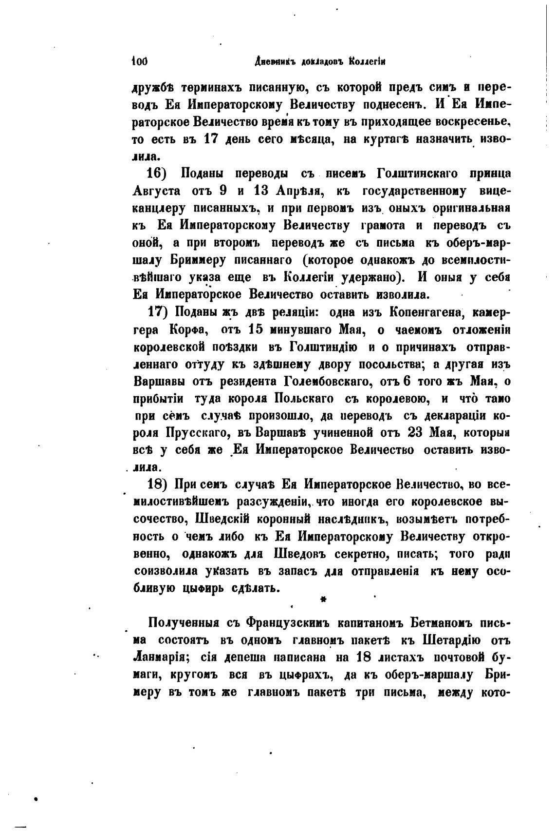 18) При сеиъ случав Ея Императорское Величество, во все-