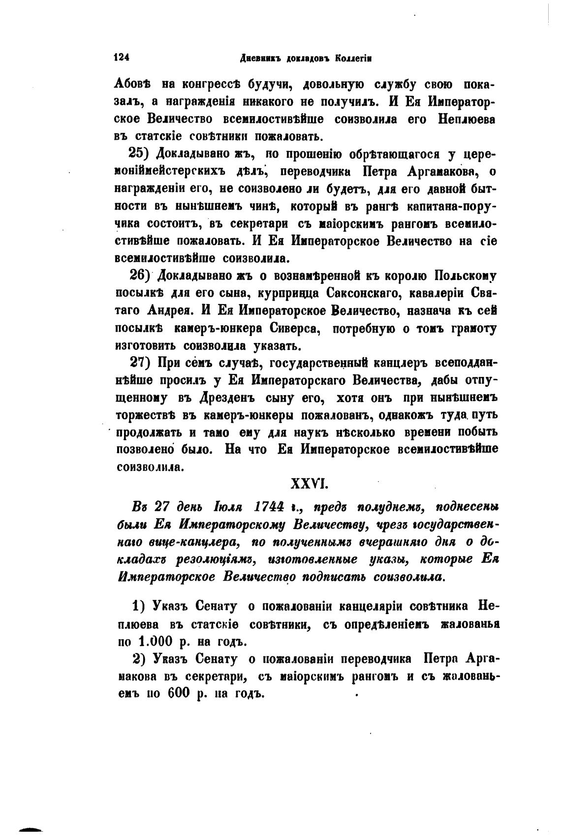 2) Указъ Сенату о пожаловшйи переводчика Петра Арга-