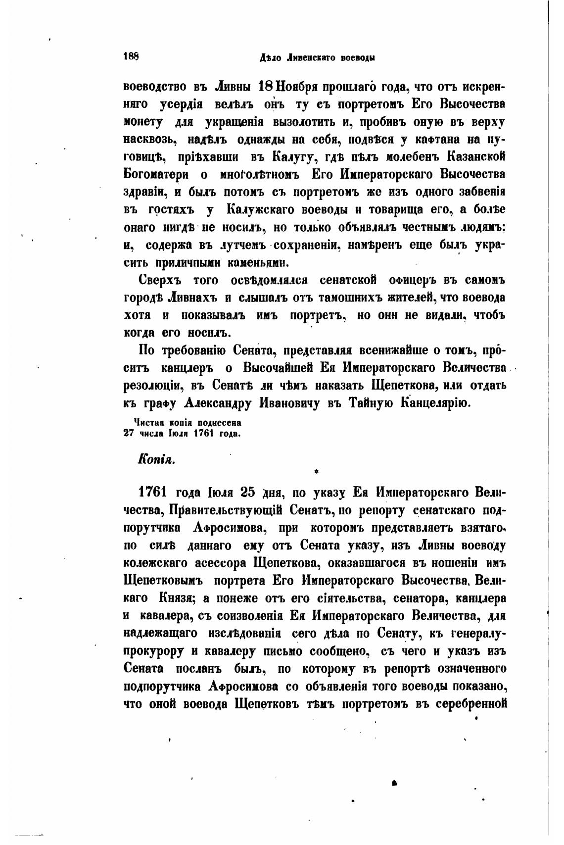 1761 года [юля 25 дня, по указу Ен Императорскаго Вели-