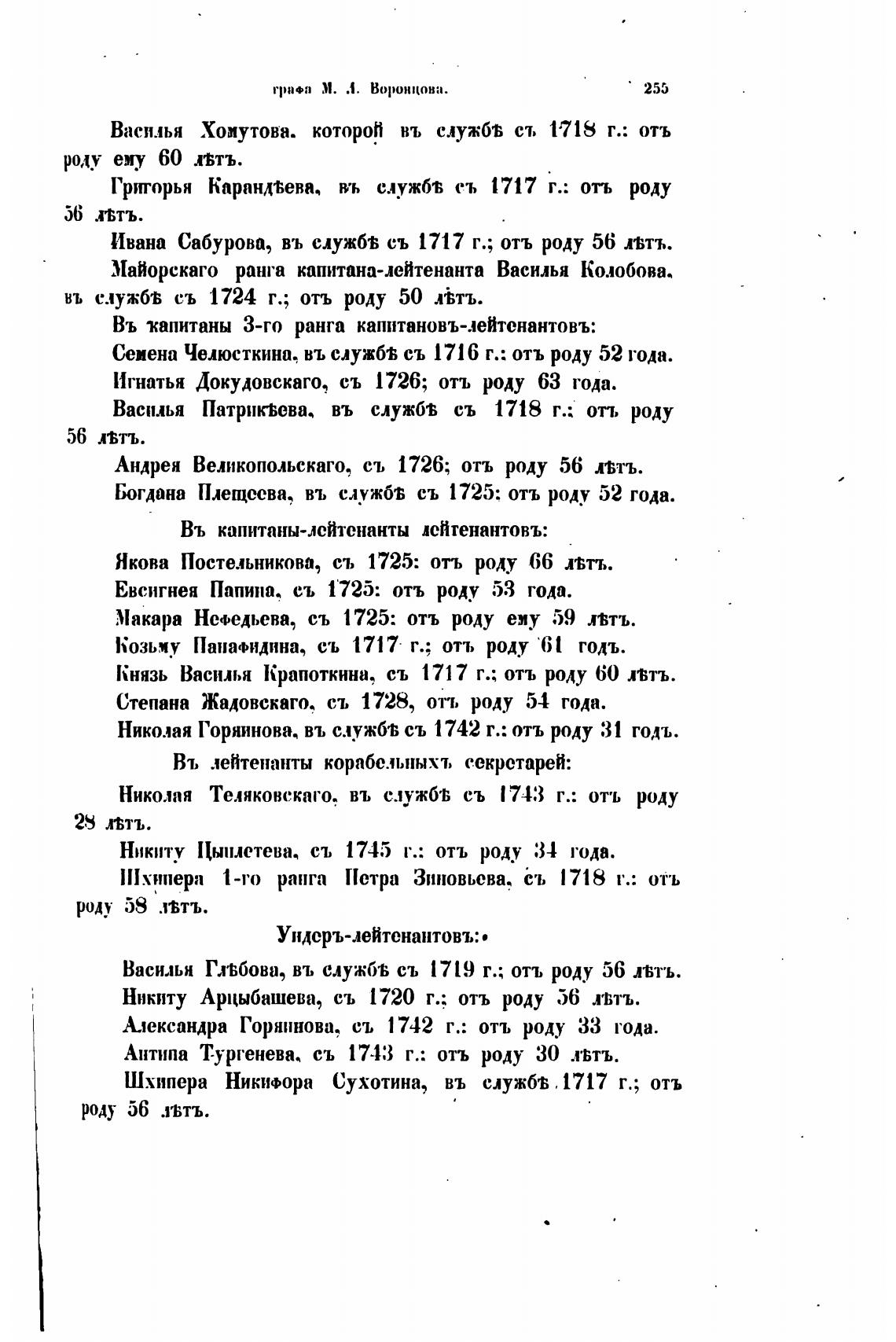 Николая Теляковскаго. въ служб•В съ 1743 г.: отъ роду