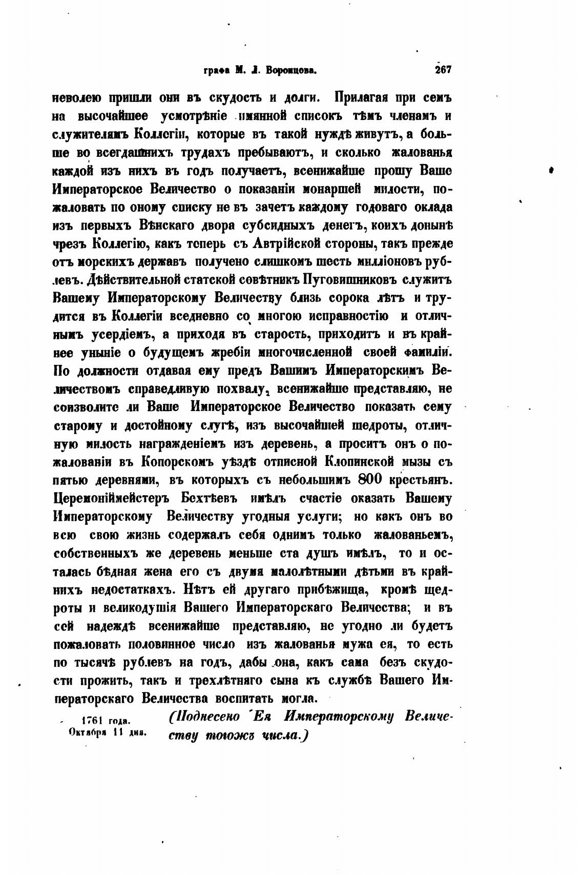 По должности отдавая ему предъ Вашимъ Императорскимъ Ве-
