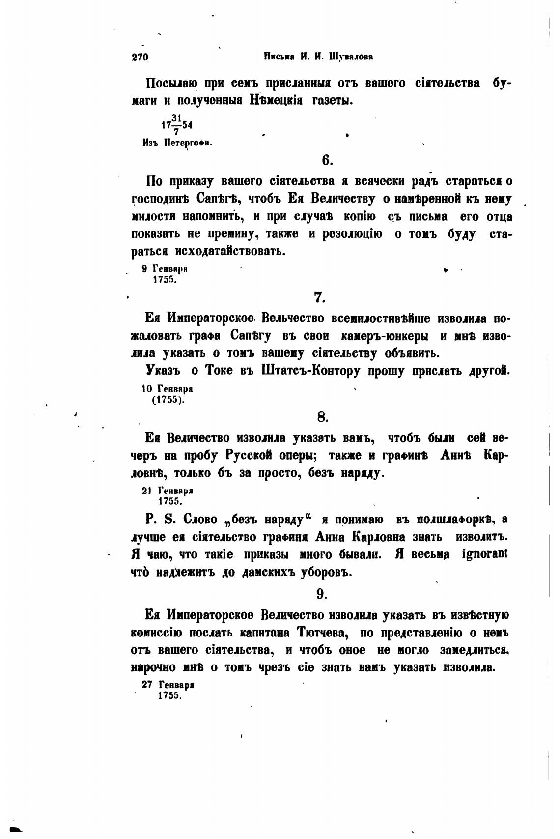 Письм И. И. Шувалова