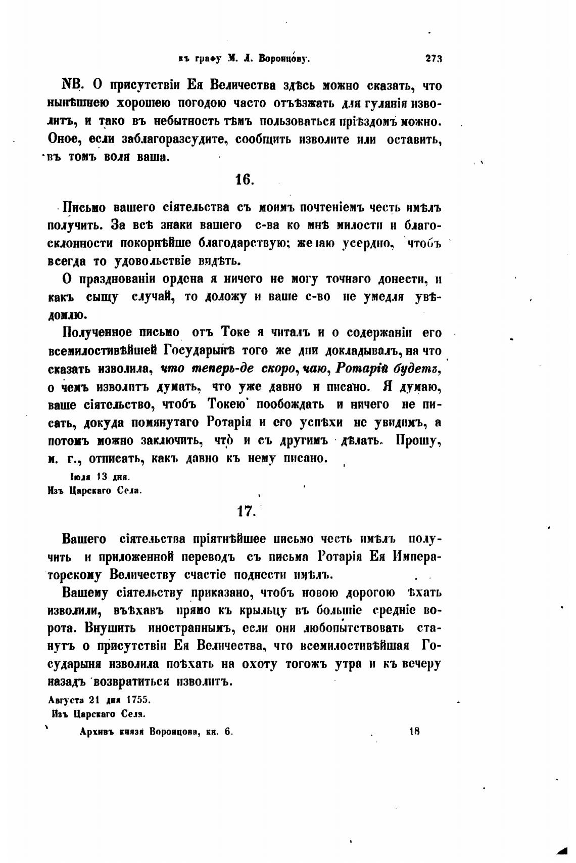 чить и приложенной переводъ съ письма P0TapiH Ея Импера-