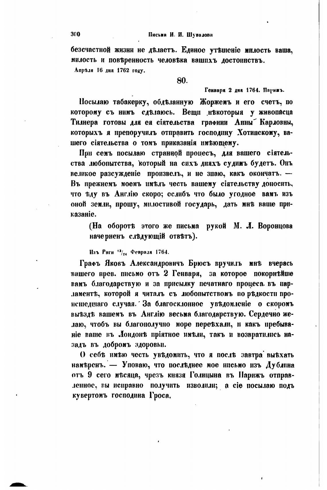 (На оборот% этого же письма рукой М. Л. Воронцова