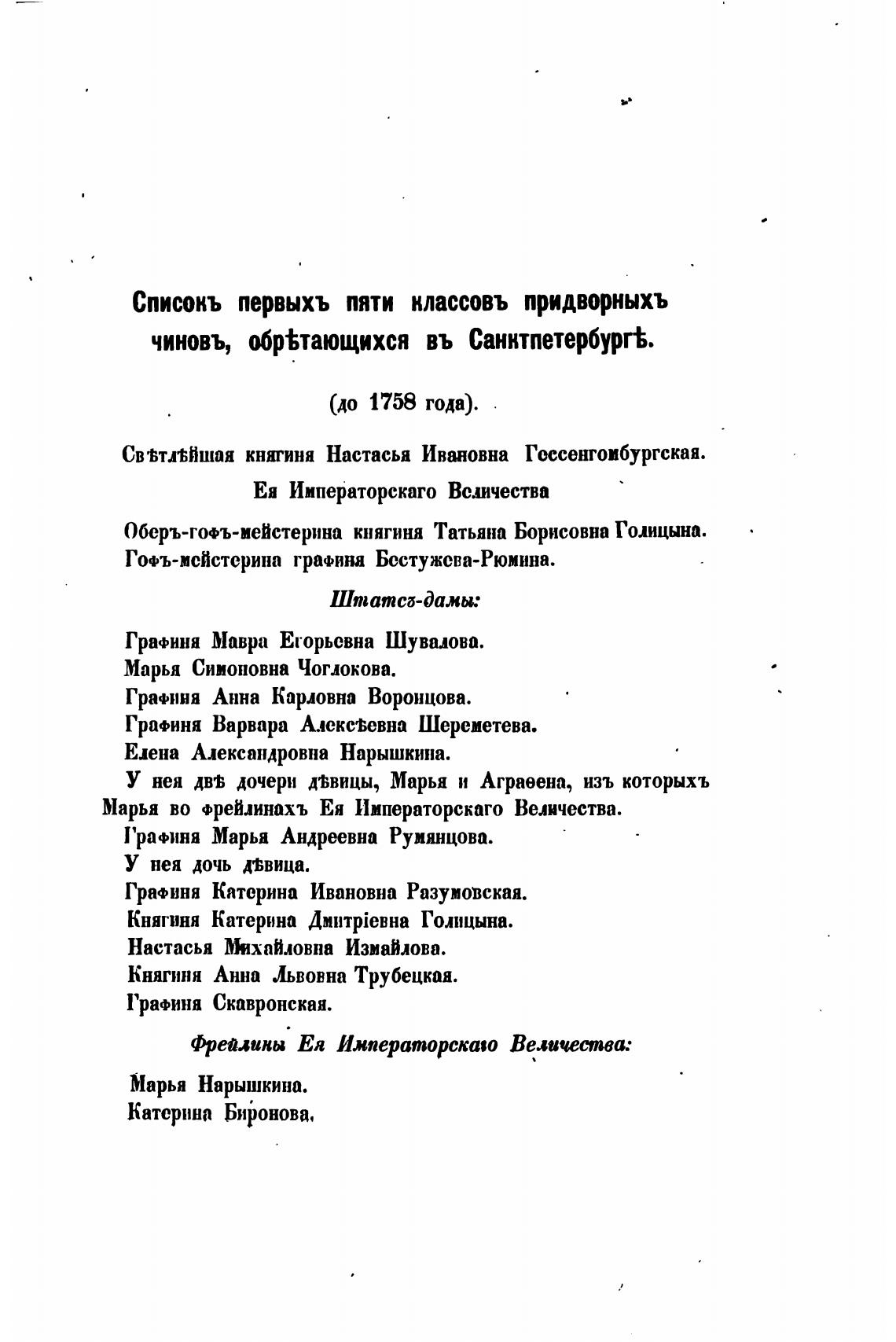 Списокъ первыхъ пяти классовъ придворныхъ