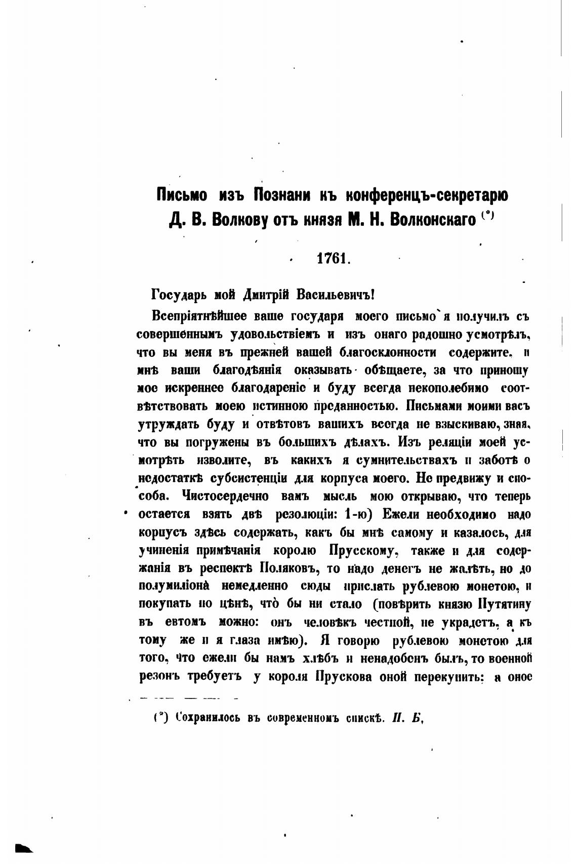 (2) Сохранилось въ современнокъ списк%. П. Б,