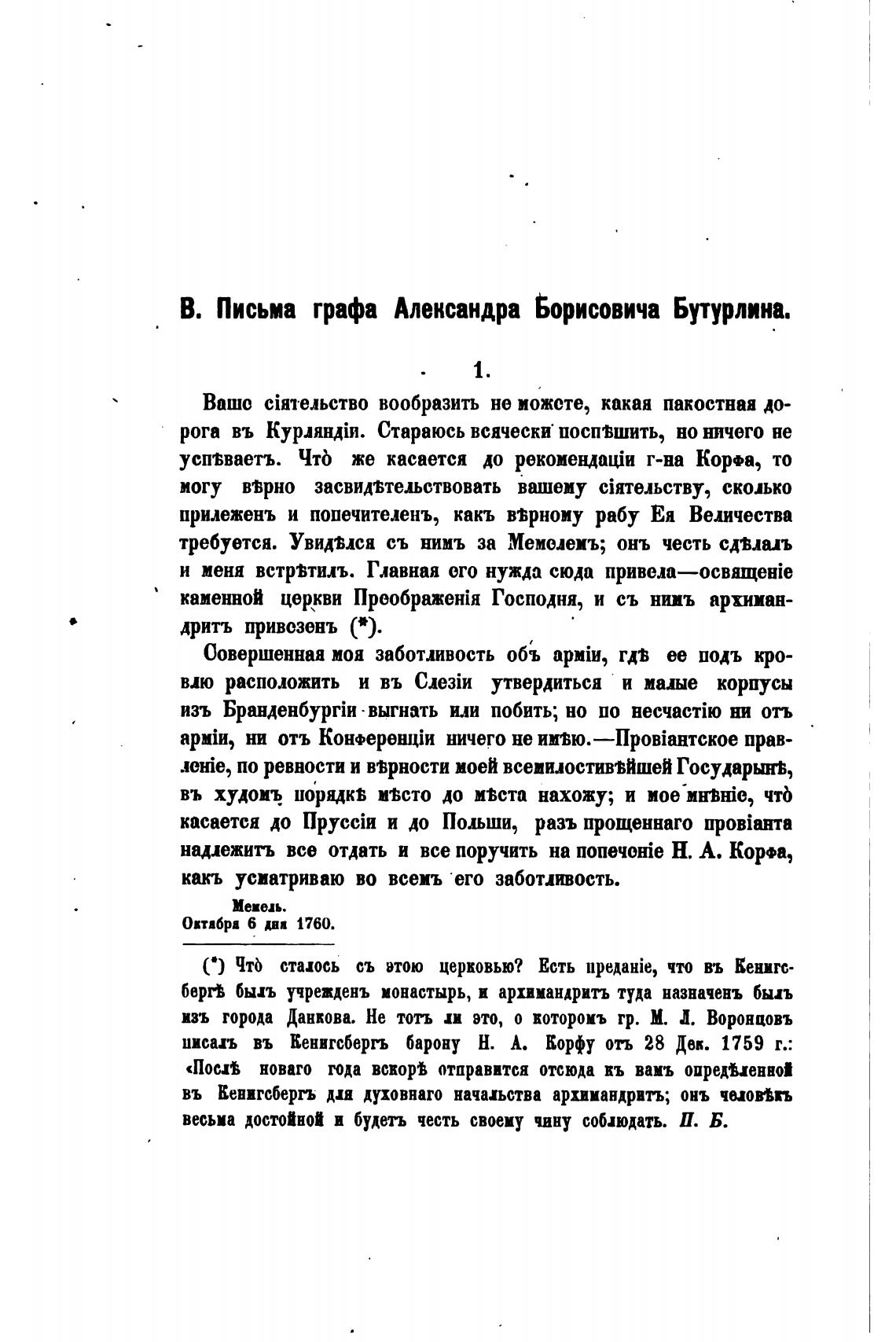 В. Письма графа Александра Борисовича Бутурлина.