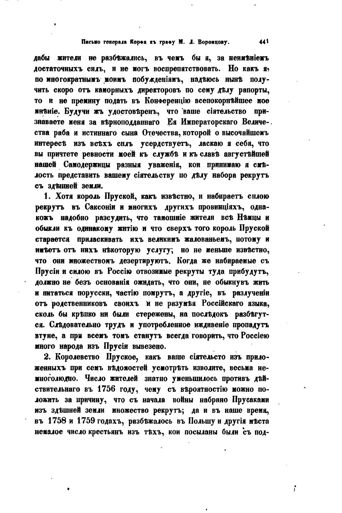 Письмо генерал Кора п гра•у М. Л. Воронцову.