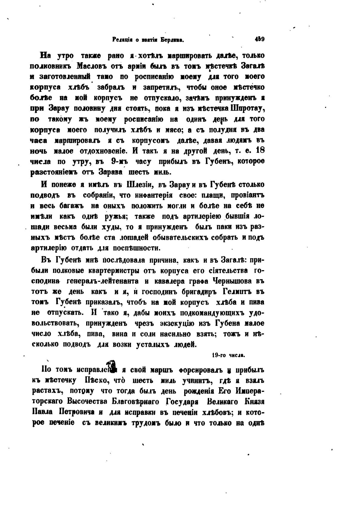 топь Губен$ приказалъ, чтобъ на вой корпусъ хлба и пива