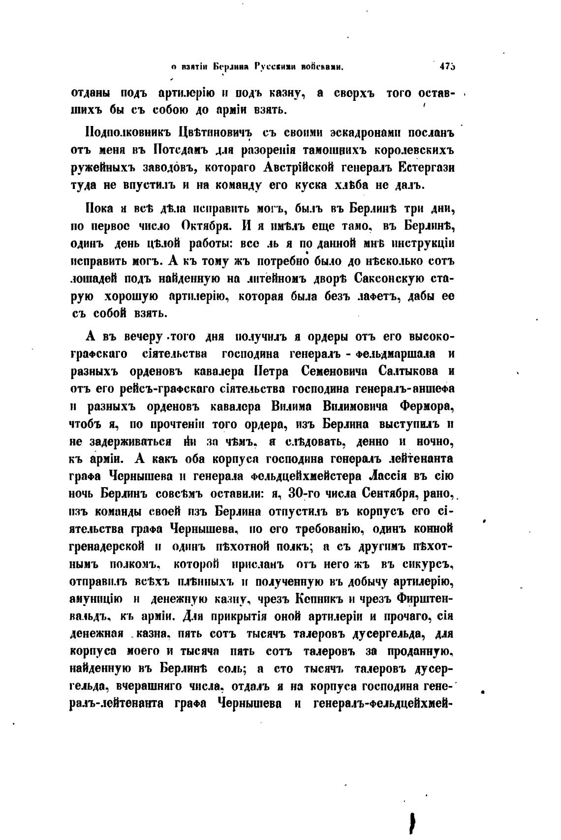 чтобъ я, по того ордера, изъ Берлина выступилъ и