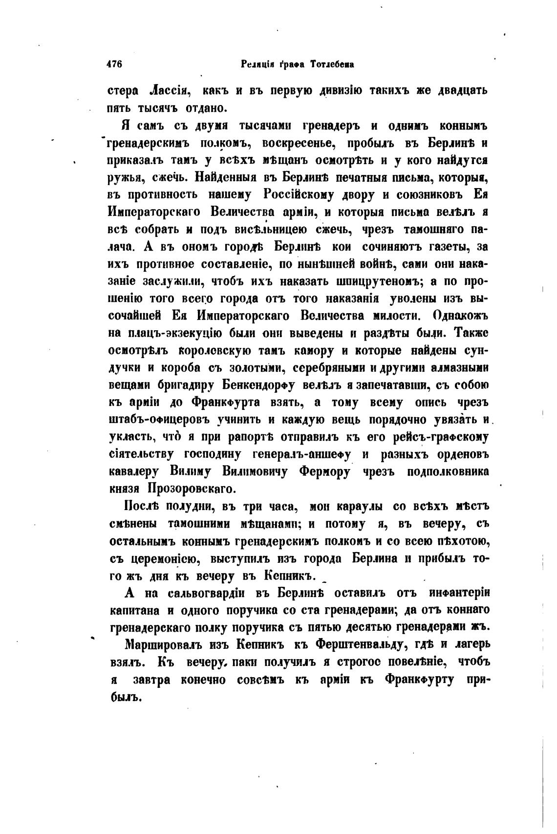 оста.љнымъ коннымъ гренадерскимъ полкоиъ и со всею пвхотою,