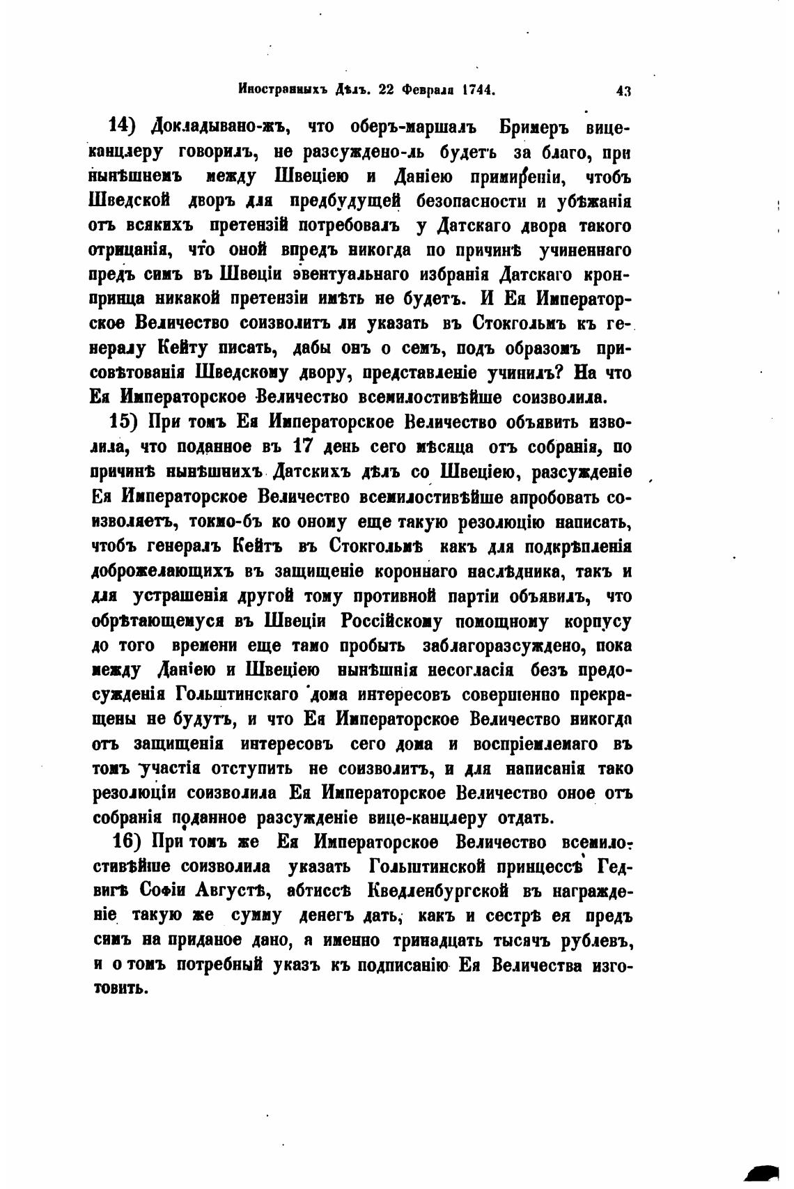 16) При тоиъ же Ея Императорское Величество всеиило: