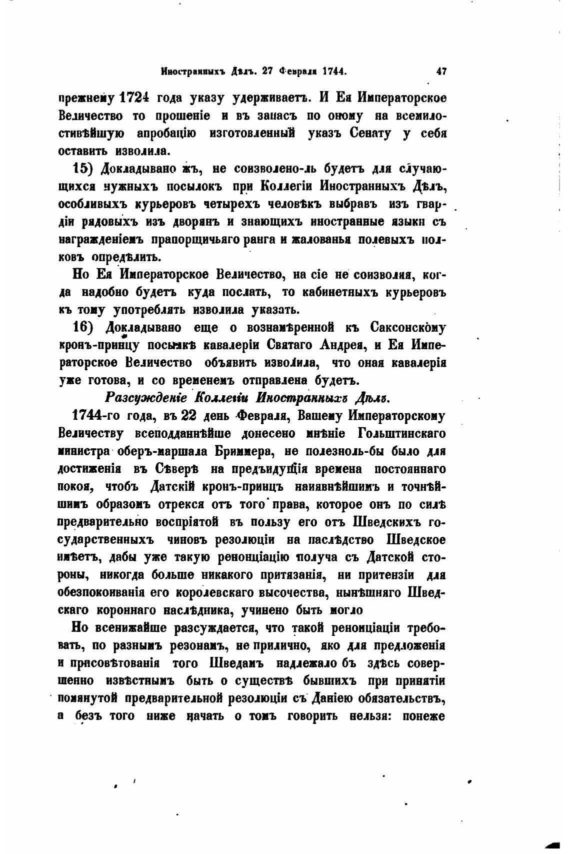 Иностранвыхъ двп. 27 Феврап 1744.