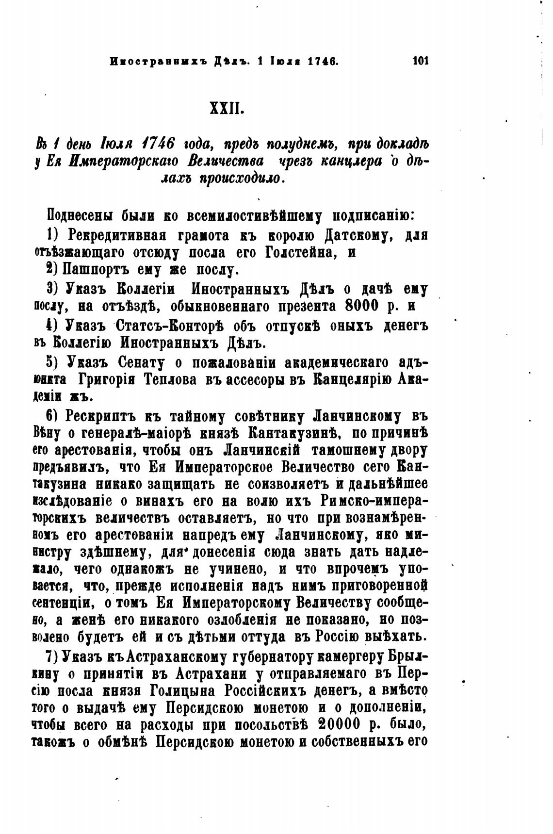 7) Указъ къАстраханскому губернатору камергеру Бри-