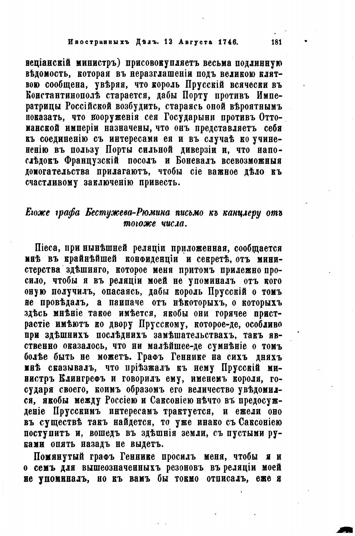 Егоже tpafa Бестужева-Рюмина писЬж0 канцлеру отб
