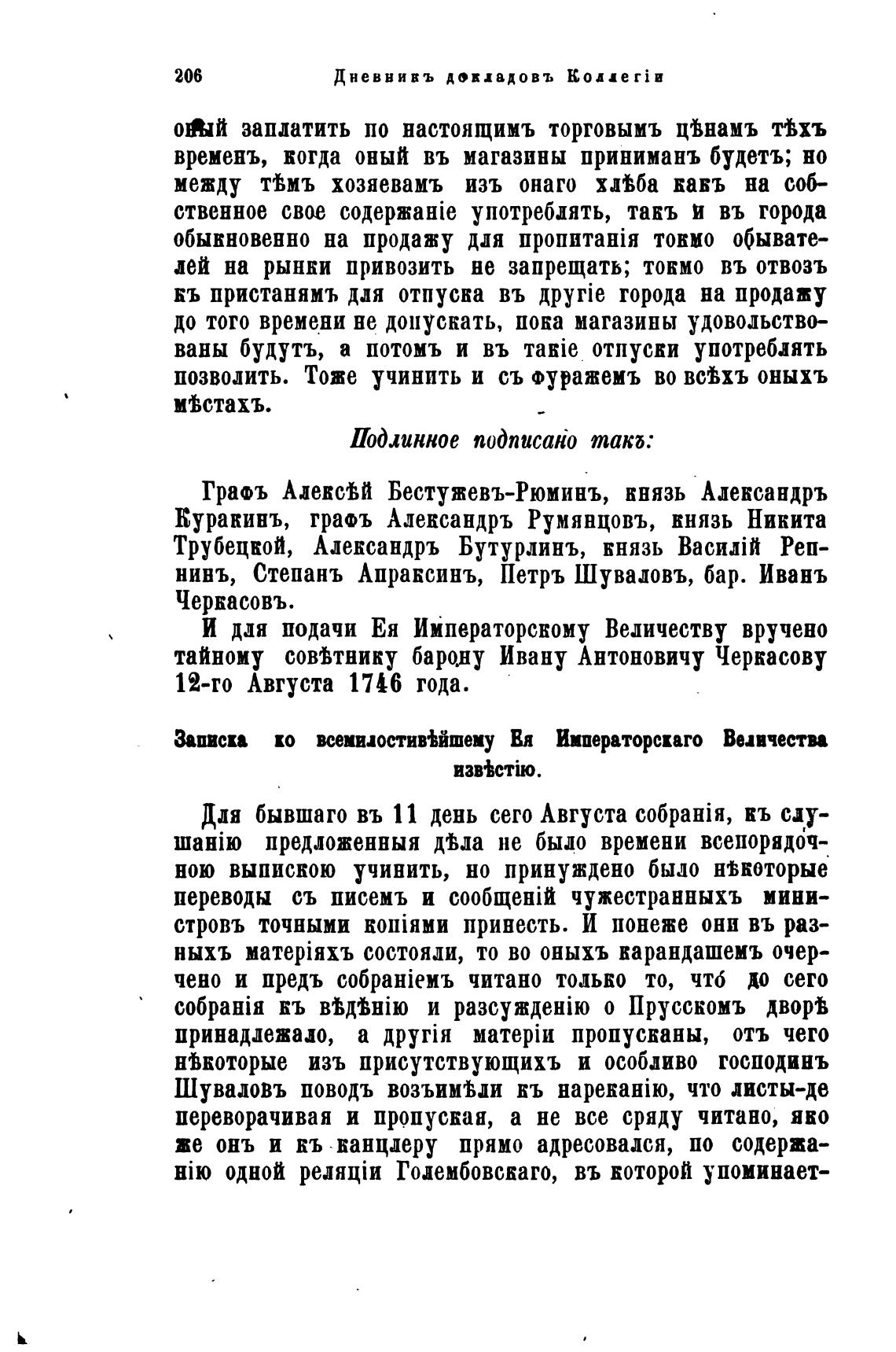 И дая подачи Ея Императорскому Велшеству вручено