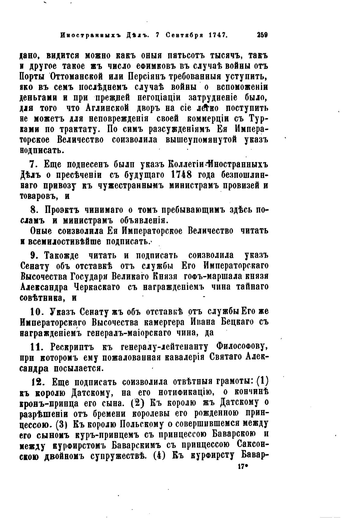 Иностраявыхъ Д Вдъ. 7 Севтября 1747.