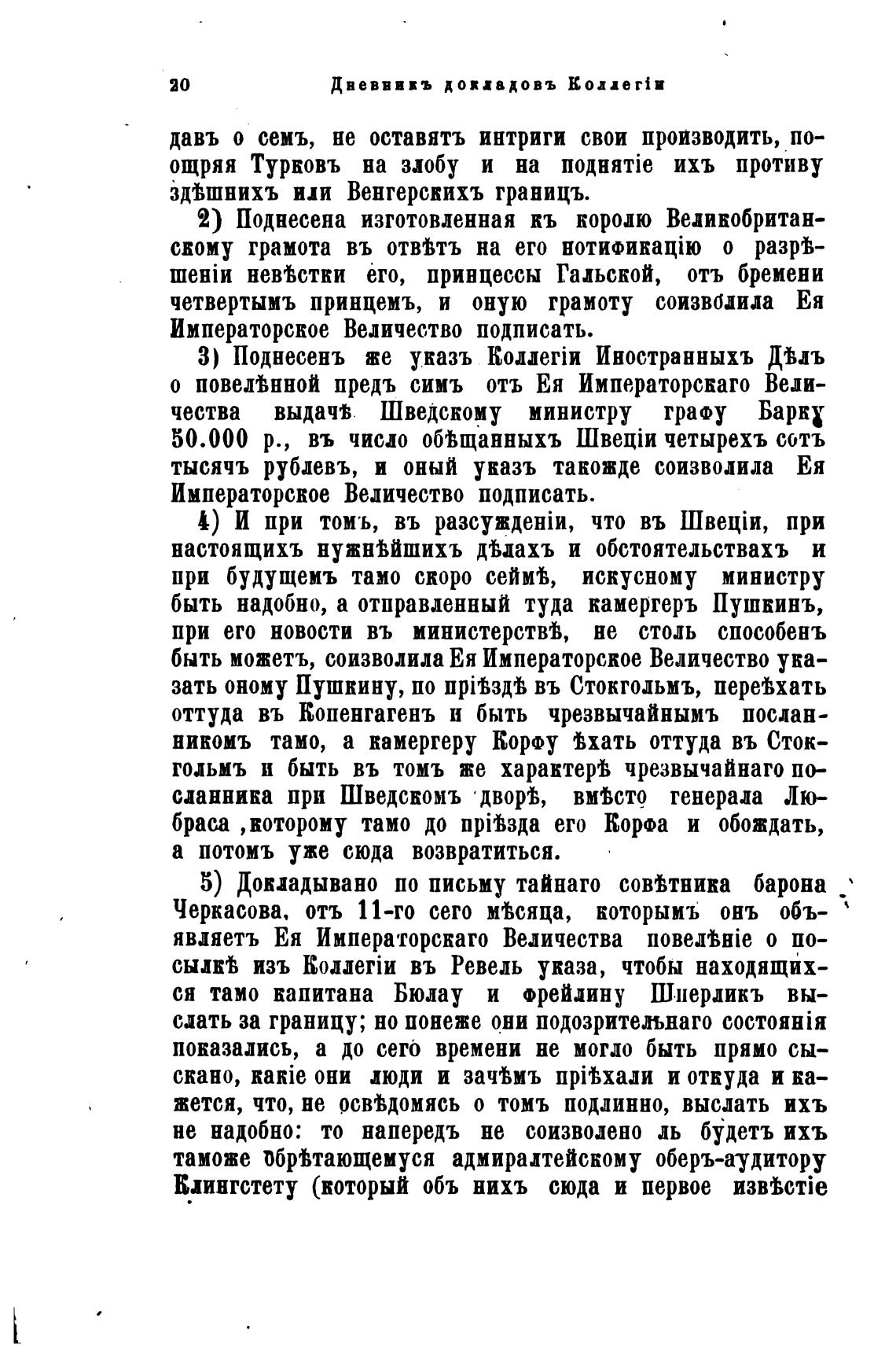 чества выдачв Шведскому министру графу Барк: