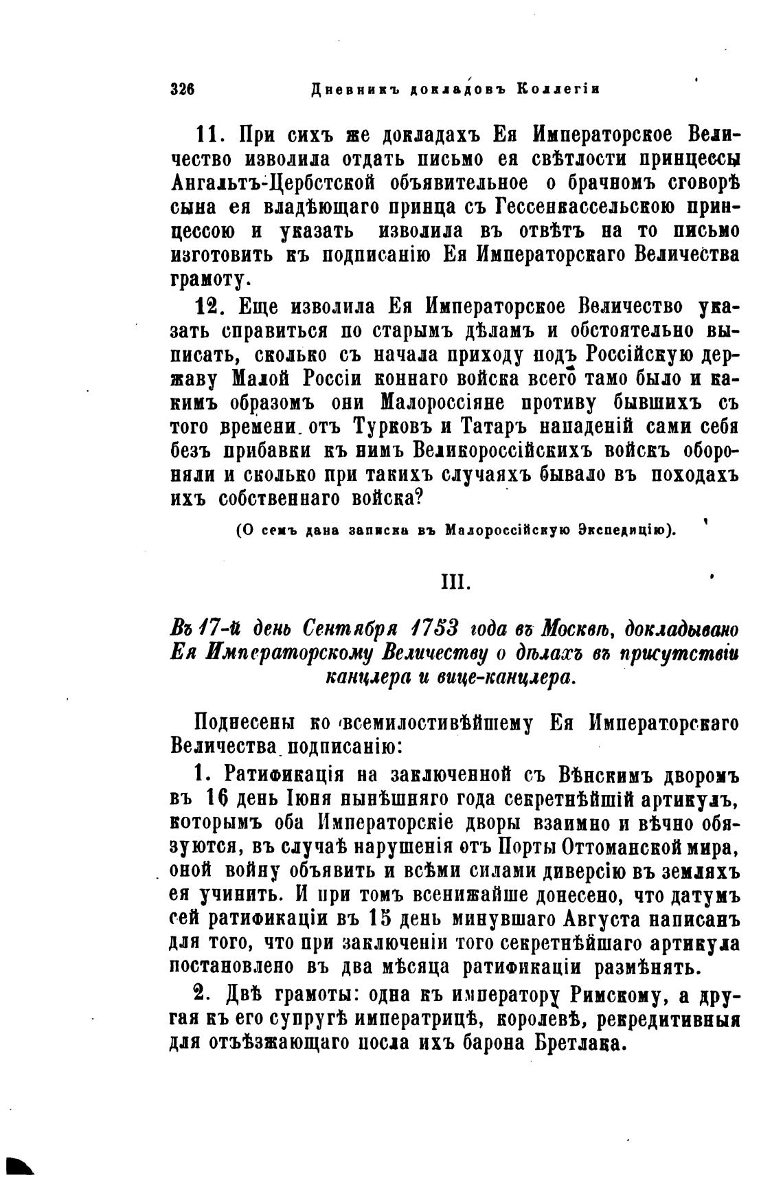 11. При сихъ же докладахъ Ея Императорское Веди-