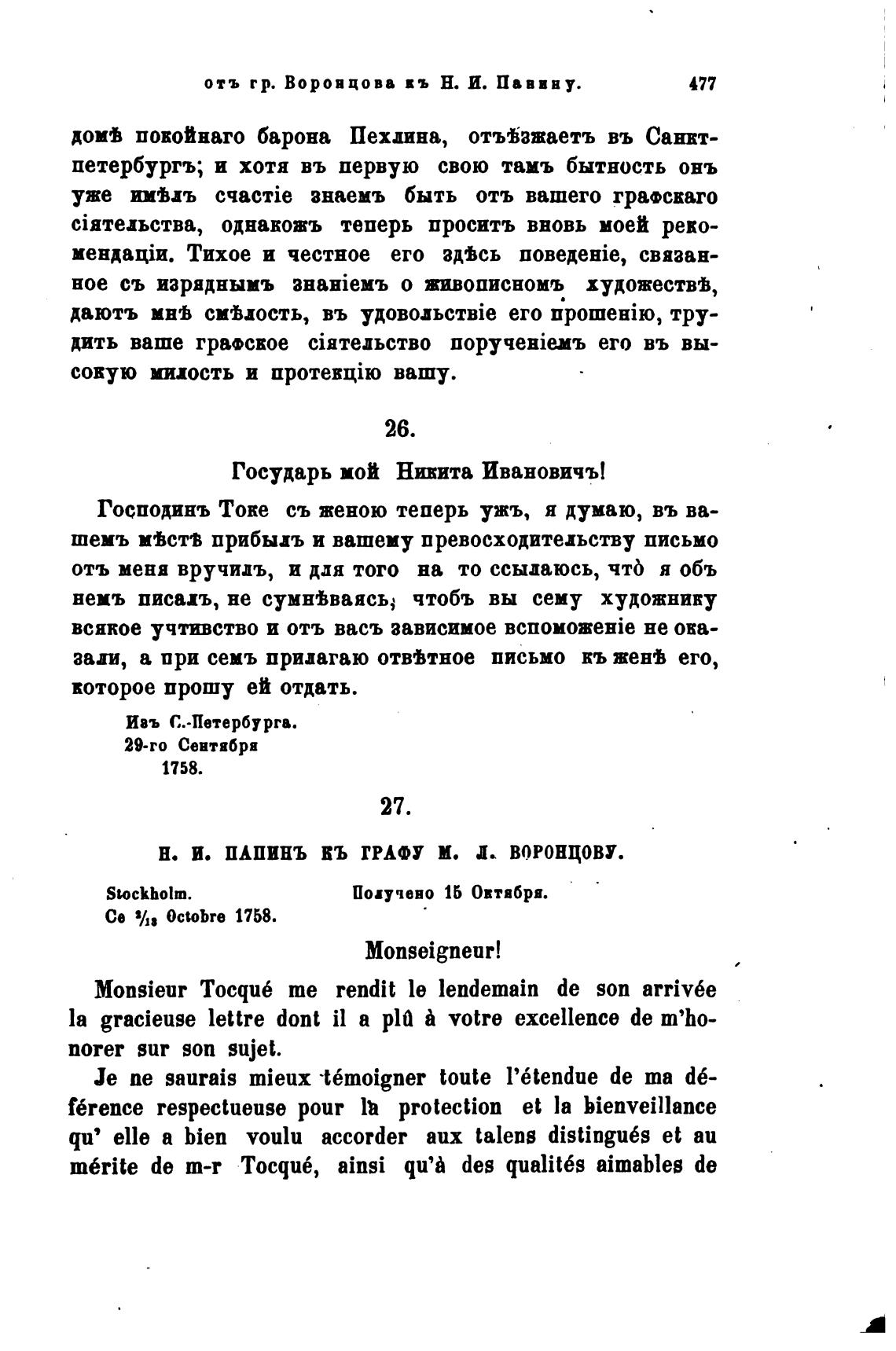 Н. И. ПАПИНЪ ВЪ ГРАФУ М. ВОРОНЦОВУ.