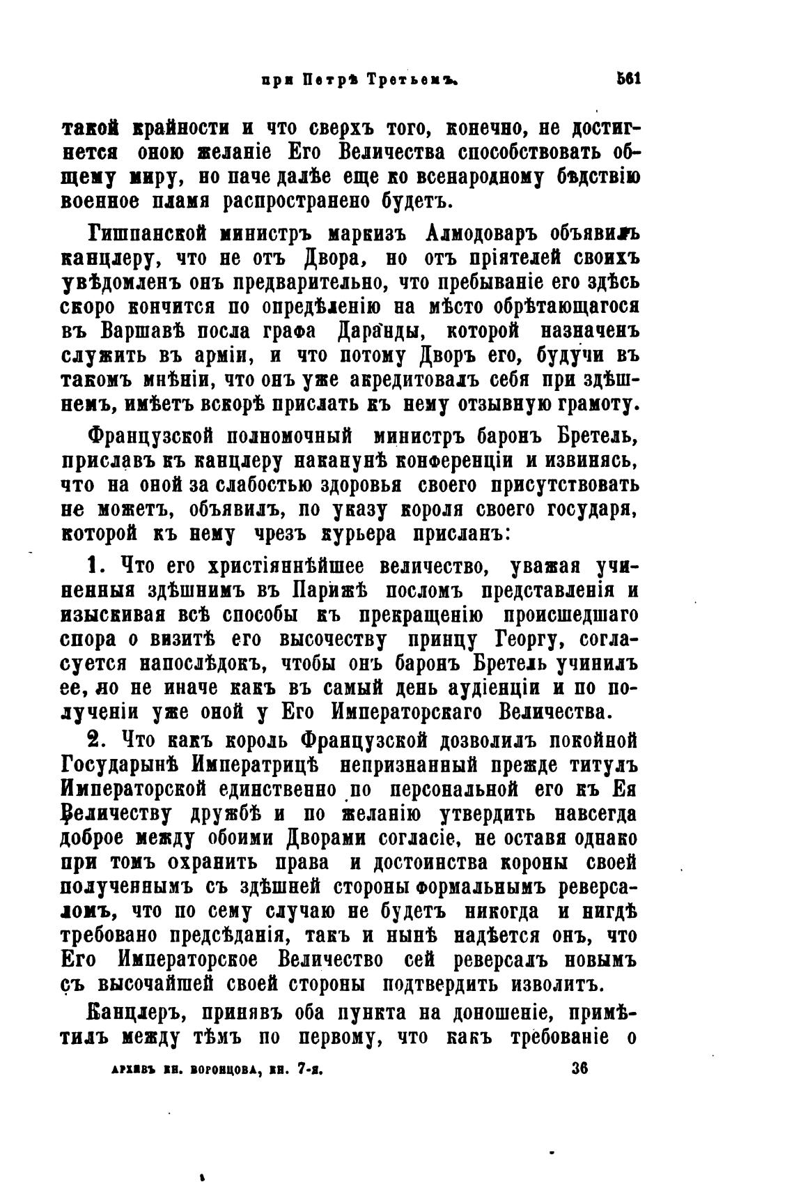 суется напослдокъ, чтобы онъ баронъ Бретель учинилъ