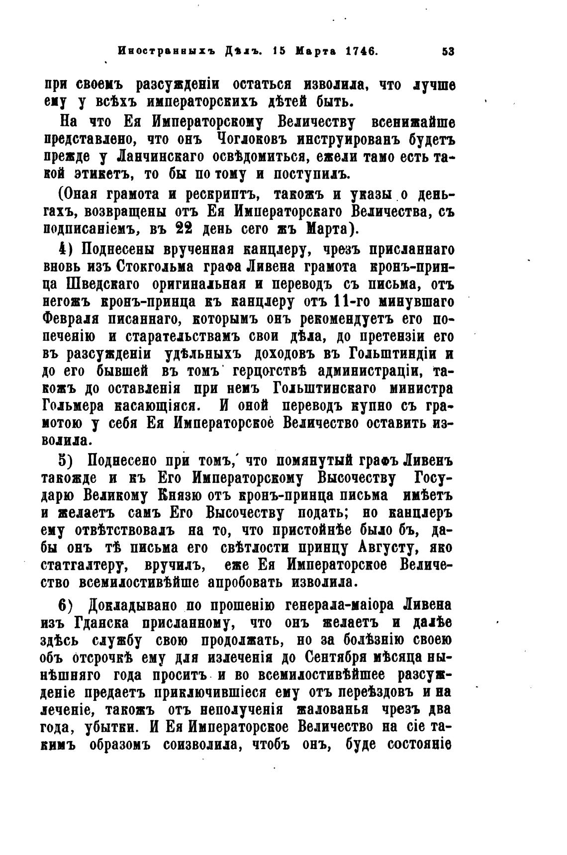 Иностранвыхъ Дваъ. 15 Ив рта 1746.