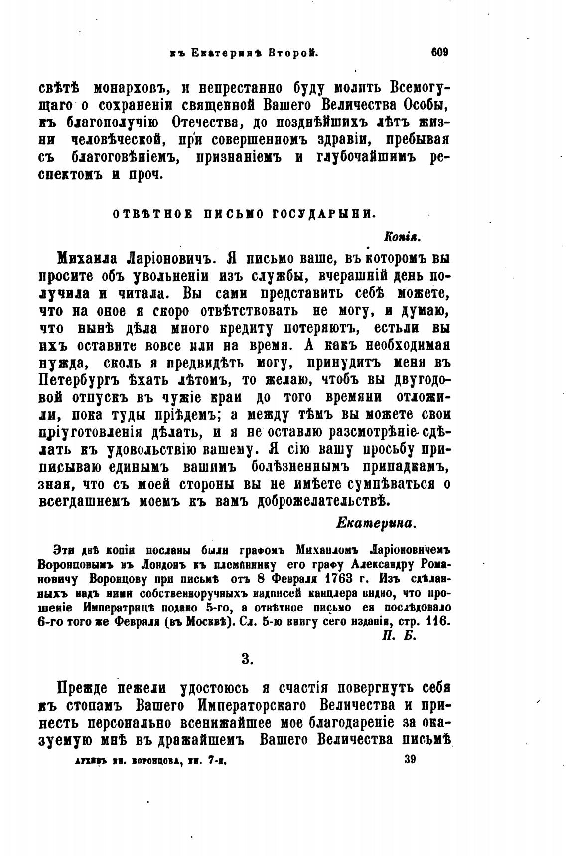 новичу Воронцову при письм$ отъ 8 Февраля 1763 г. Изъ сдыав-